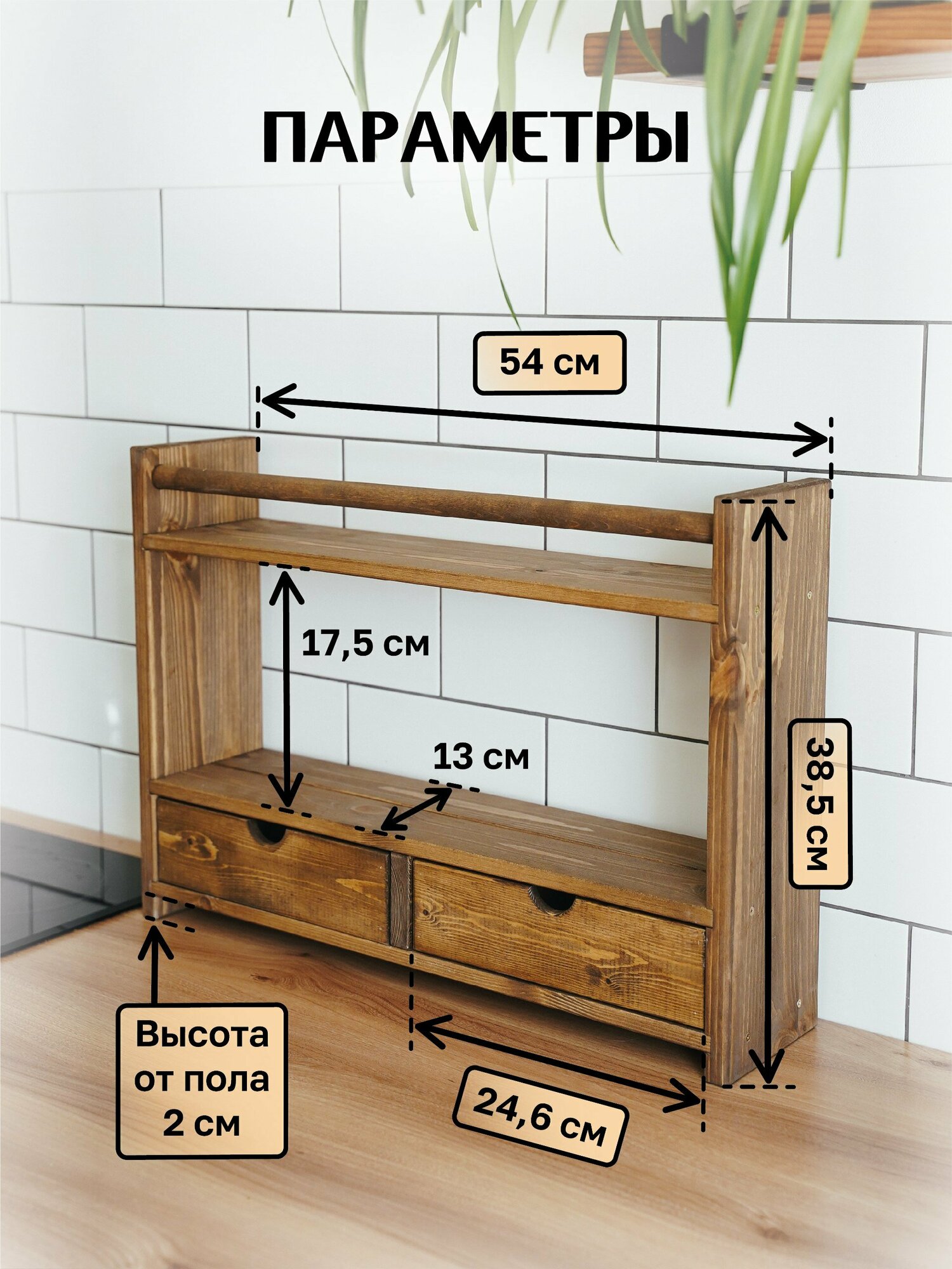 Настольная деревянная полка с 2 ящиками