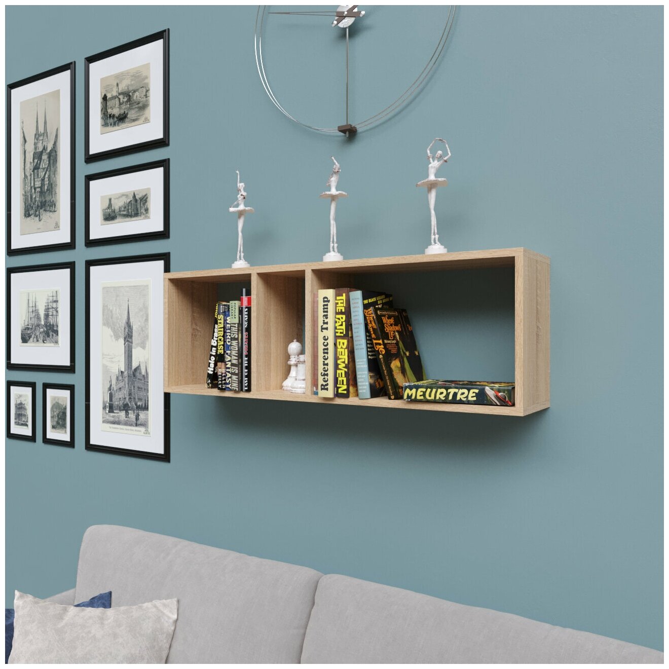 Купить Полка настенная навесная открытая деревянная книжная, для учебников, для игрушек в детскую комнату, для ванной, кухни, спальни, прихожей, Rimsten R15, Дуб, 100х20х33 см