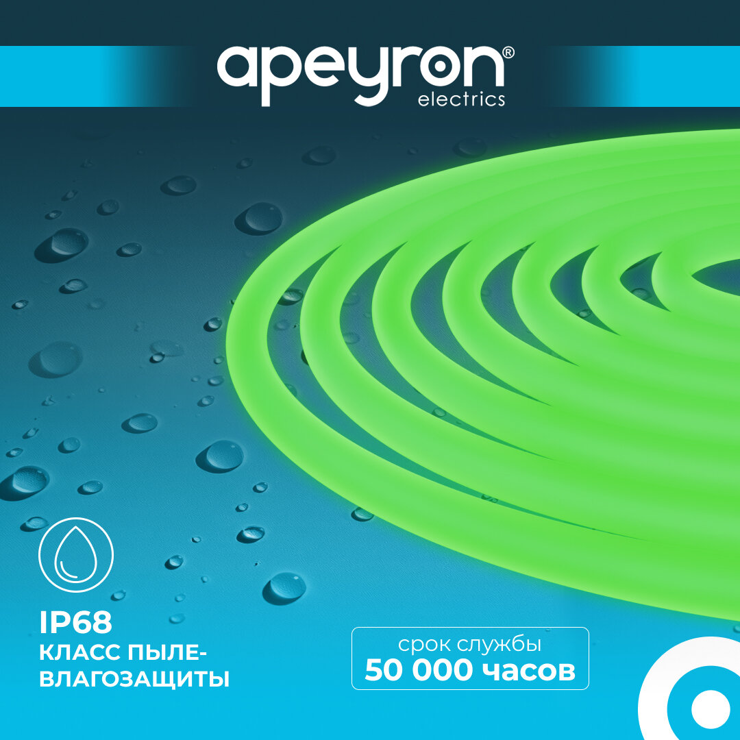 Светодиодная лента 24 В Apeyron для сауны IP68 14,4 Вт/м, 120 LED/м, 5 м зеленый