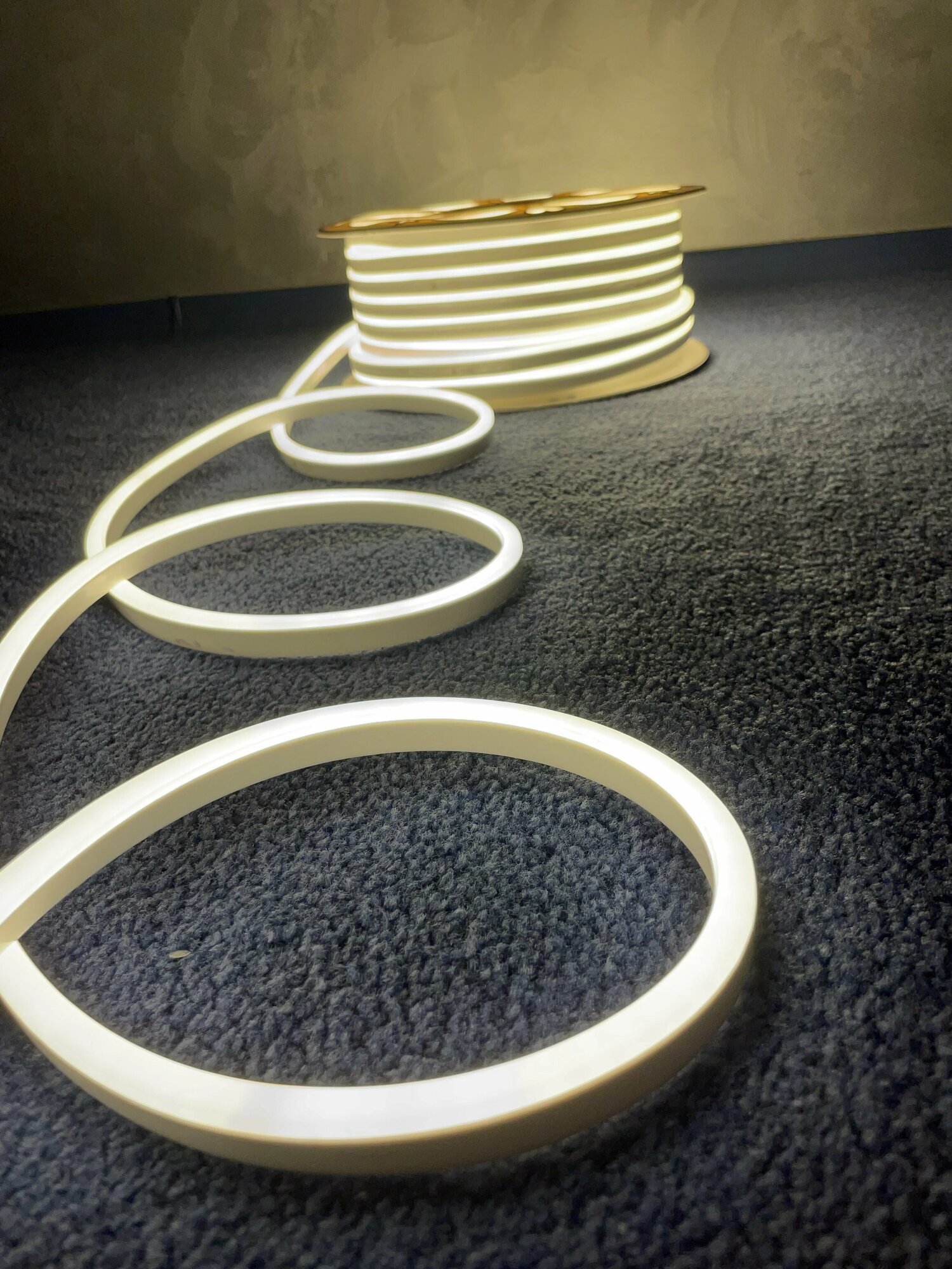 PJ Neon, Интерьерная неоновая светодиодная лента для улицы и помещения - гибкий неон 20м, 8х16мм, 220В, 120 LED/m, IP 67, теплый белый