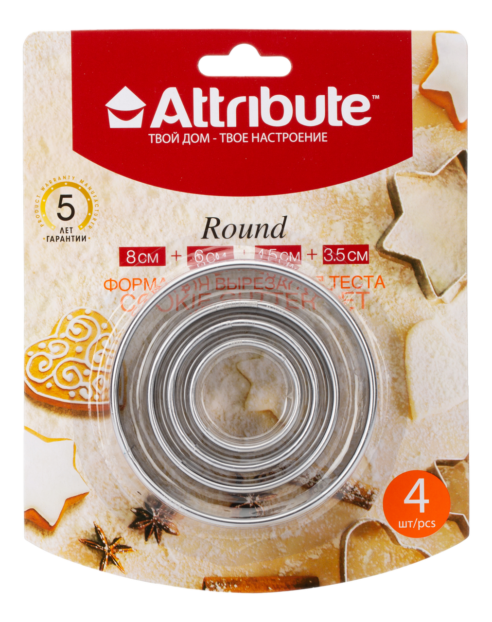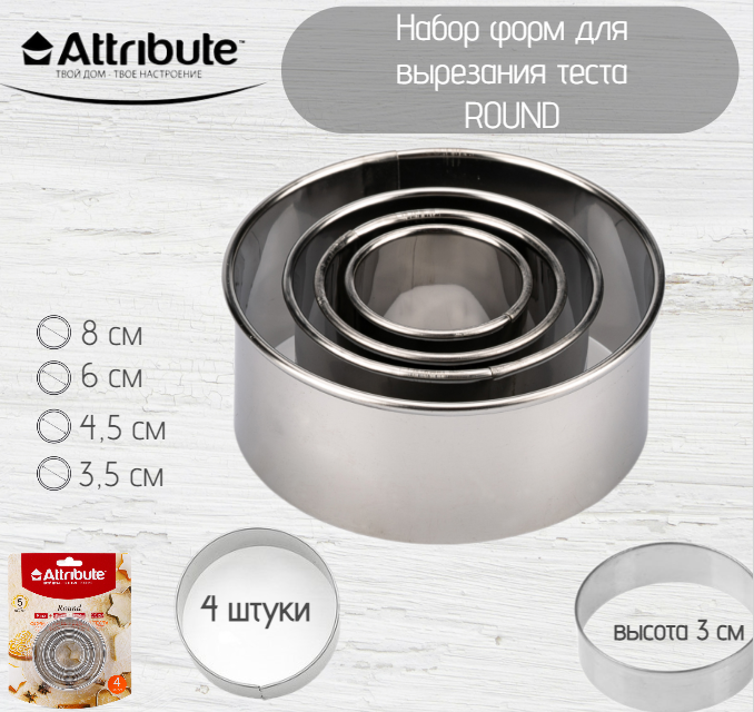 Набор форм для вырезания теста "ROUND" Attribute, 4шт, нержавеющая сталь интересное:
