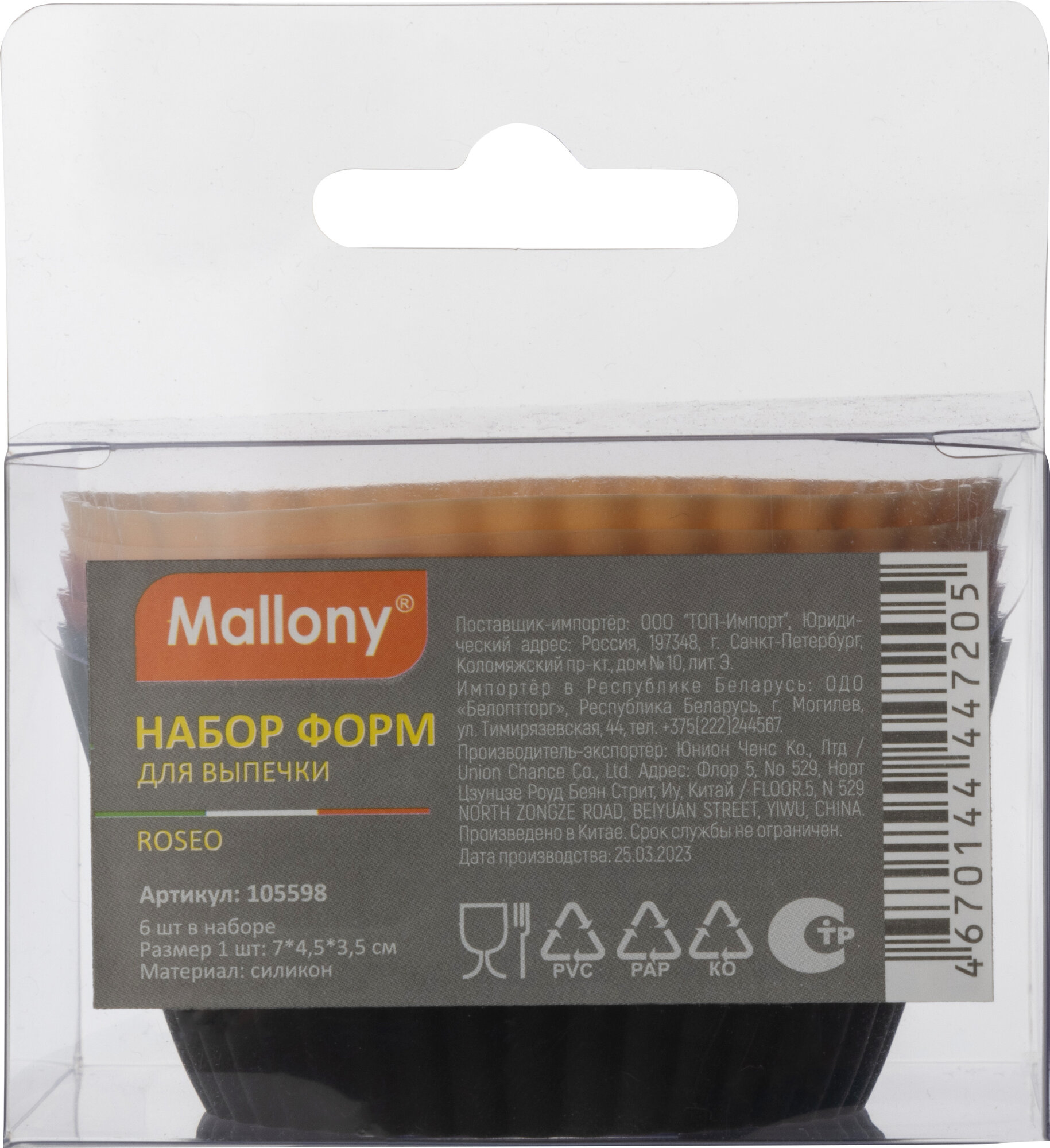 Купить Силиконовые формы для выпечки Mallony Roseo, 6 шт, диаметр: 7 см, цвета в ассортименте