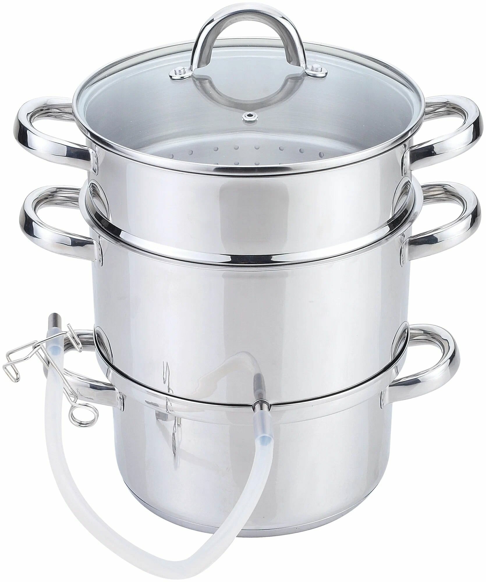 Соковарка из нерж стали MAL-JUICER-1, объем 6 л, 3 чаши, стекл крышка с пароотводом, зерк полир