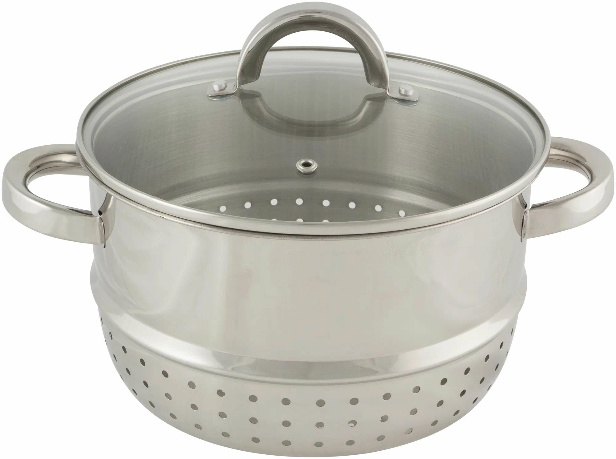 | Дополнительная информация | однослойное дно; материал крышки: стекло; материал ручек: сталь; чаша для воды - 20х11 см, чаша для сока - 22х12,5 см, чаша для фруктов/дуршлаг - 22х12,5 см |