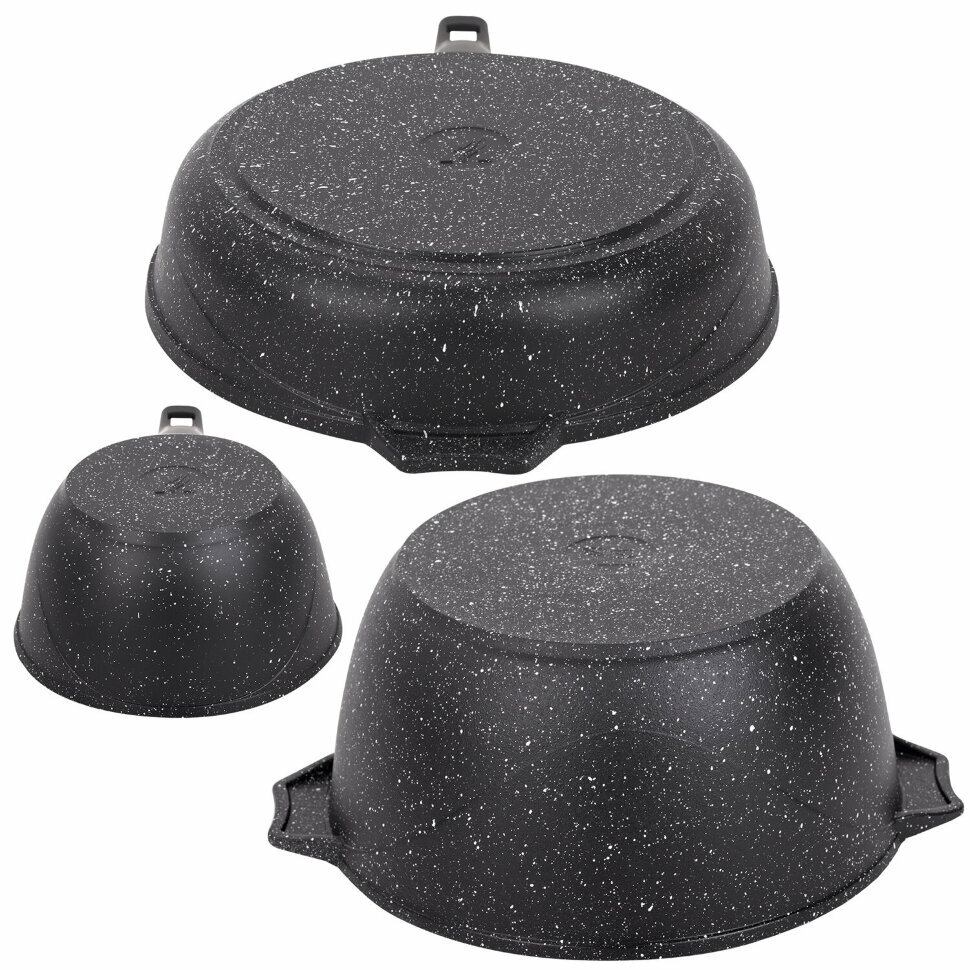 Набор литой посуды с антипригарным покрытием "Гранит" (сковорода и ковш со съемной ручкой, кастрюля), р001802