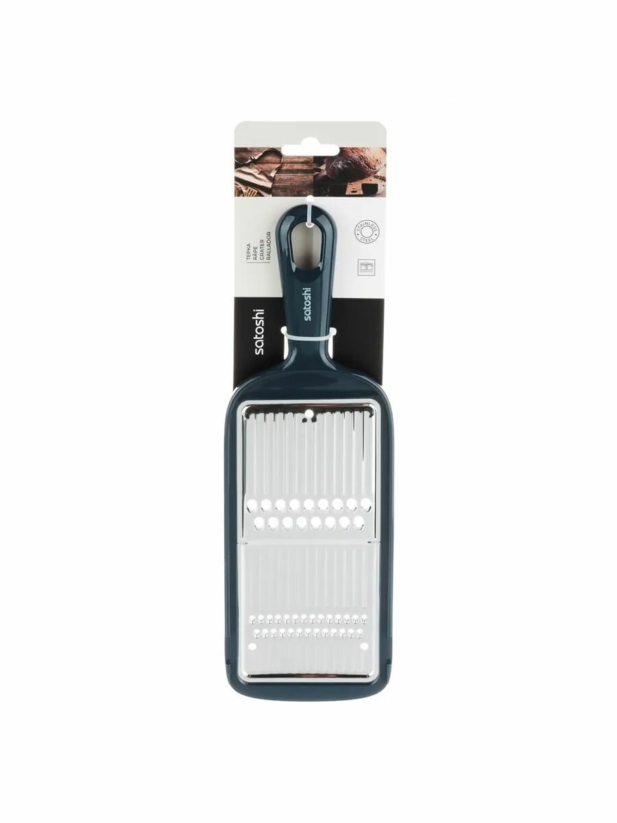 Терка 3-х сторонняя SATOSHI, 20см, нержавеющая сталь, деревянная ручка