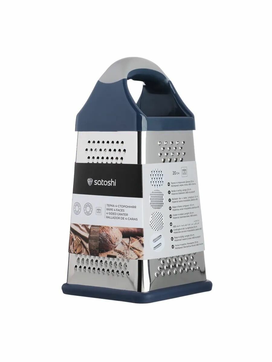 Терка 4-х сторонняя SATOSHI, 20 сантиметров, нержавеющая сталь, серебристая