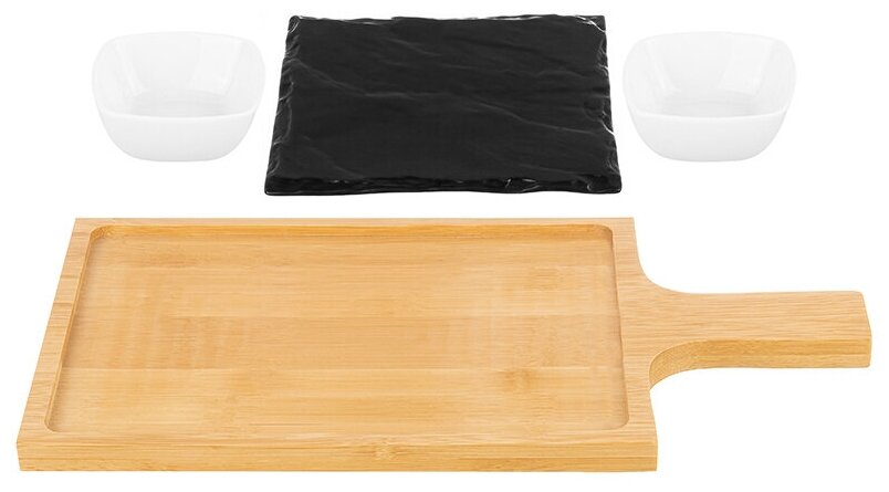 | Комплектация | разделочная доска-поднос, подставка для сыра, 2 соусника |