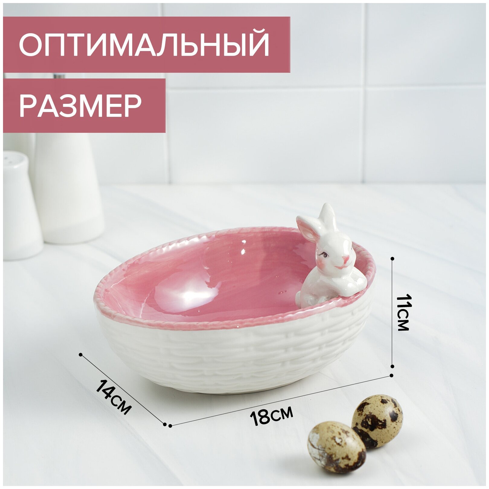 Купить Салатник для сервировки стола глубокий, керамический Доляна «Зайка», 18×14×11 см