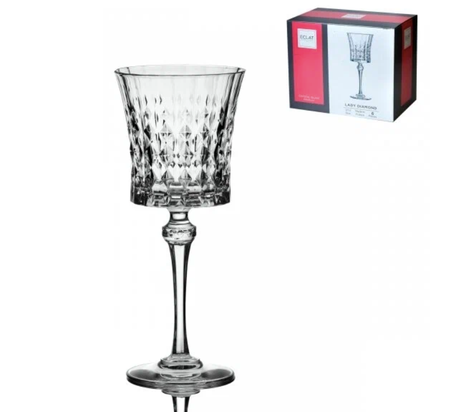 Бокалы для вина набор 6 шт Eclat Lady Diamond, хрустальное стекло, 190 мл