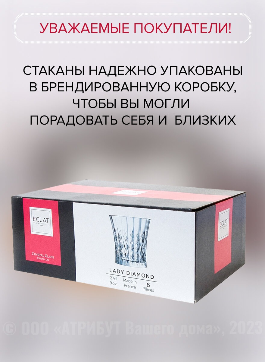 Купить Набор стаканов Crystal d'Arques ЛЕДИ ДАЙМОНД 270мл низкий 6 штук