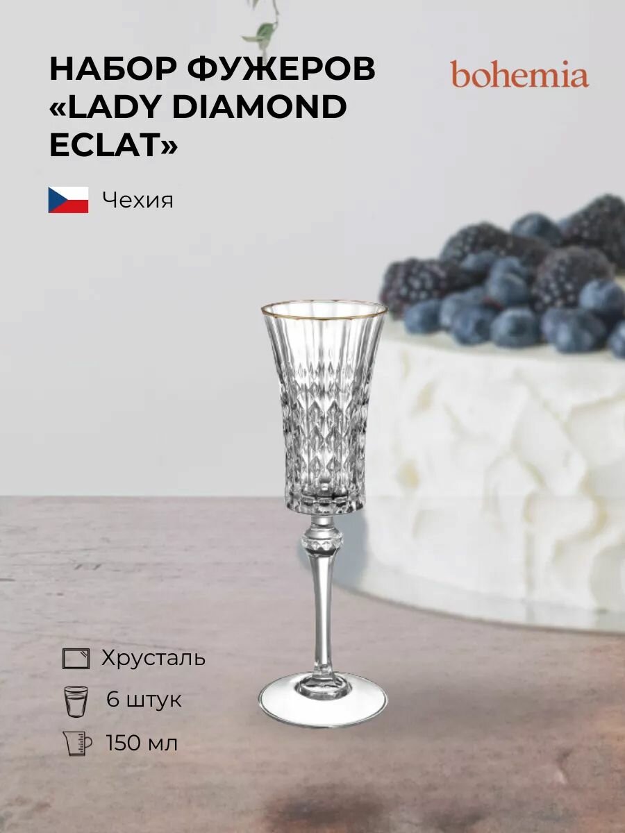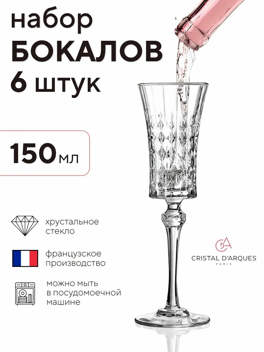 Набор фужеров (бокалов) для шампанского леди даймонд 150мл 6шт