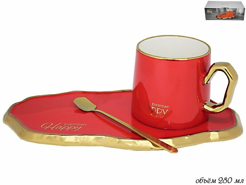Чашка с блюдцем и ложкой Lenardi "Я тебя люблю" 280мл, фарфор