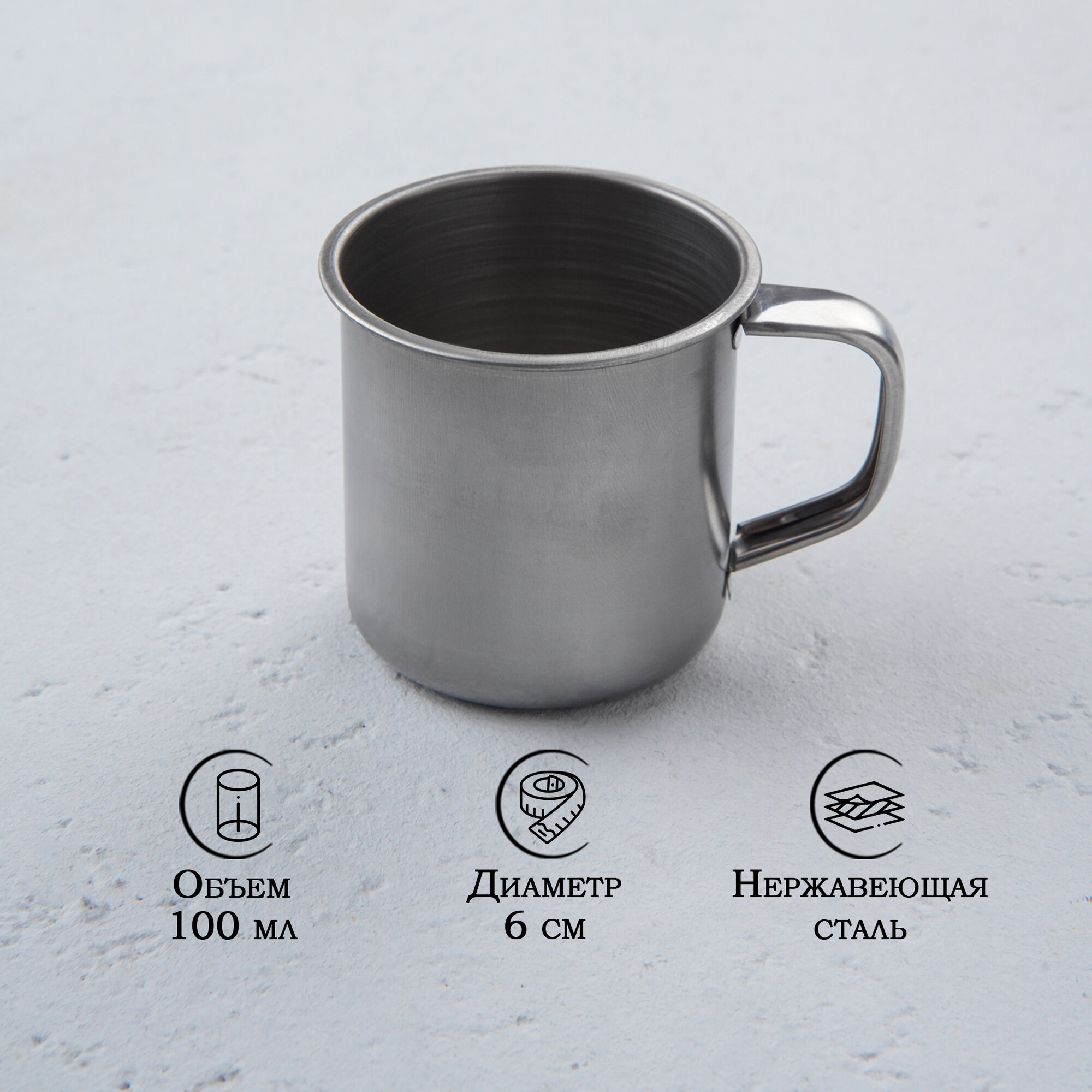Купить Кружка из нержавеющей стали туристическая, для холодных и горячих напитков Доляна «Мэйли», 100 мл, d=6 см