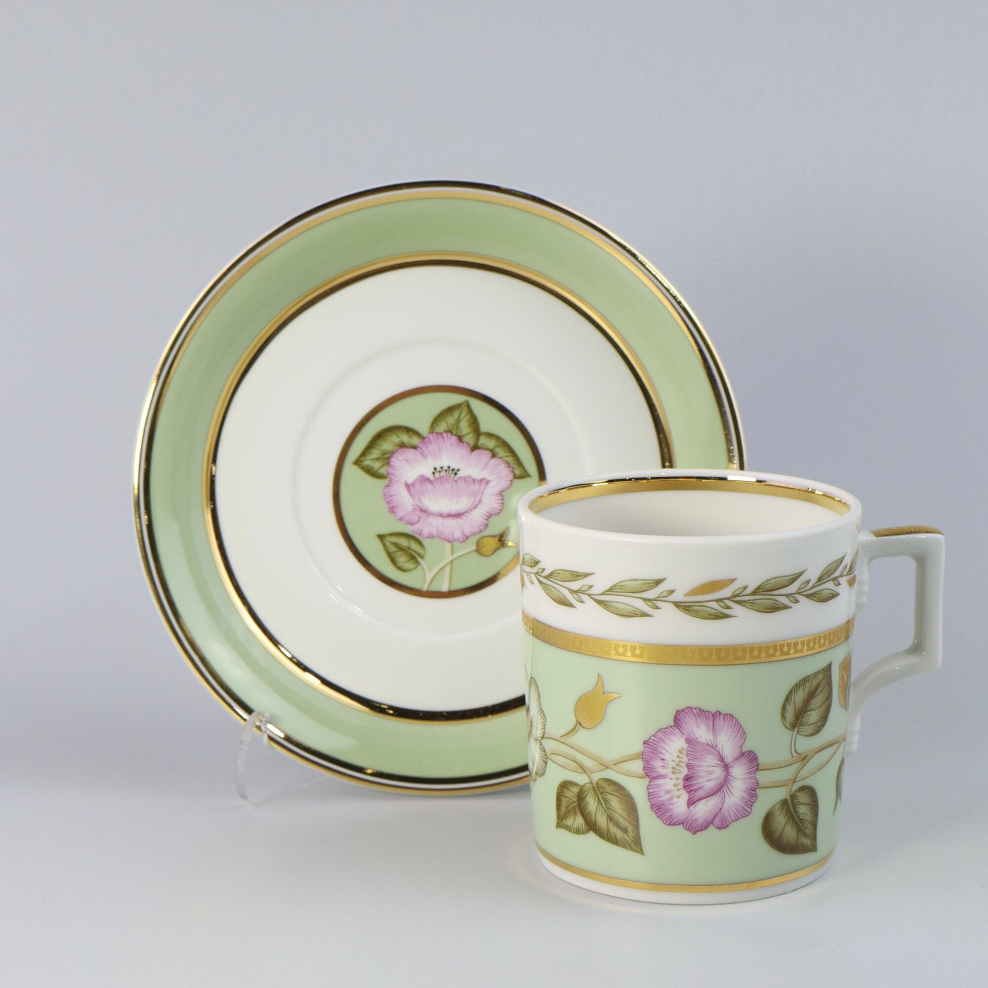 Купить Чайная пара 220 мл. Форма "Гербовая", рисунок "Нефритовый фон № 1". Твердый фарфор. Императорский фарфоровый завод ИФЗ ЛФЗ