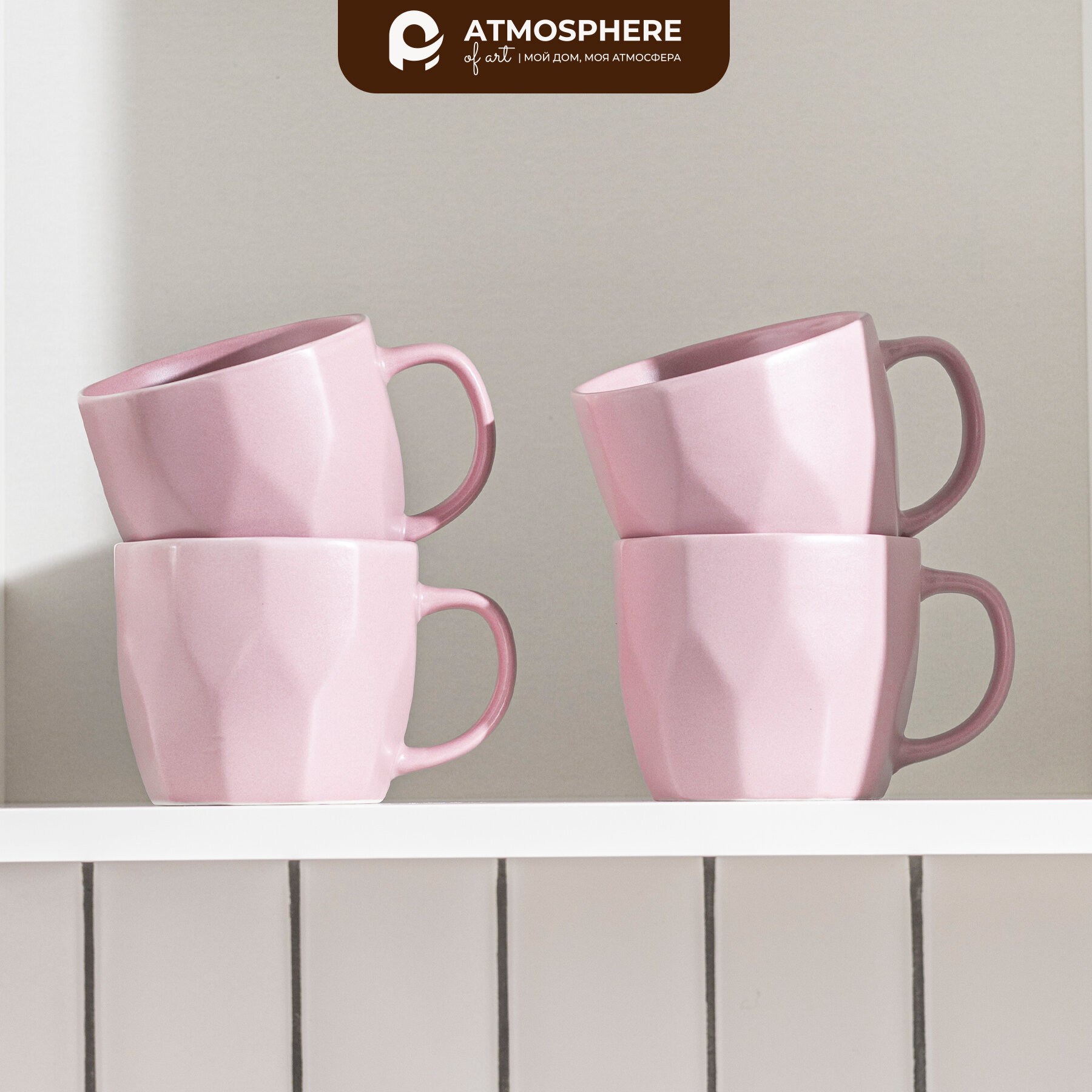 Купить Набор кружек фарфоровых Atmosphere of Art "Geometry" /360мл/ 4шт/ розовый