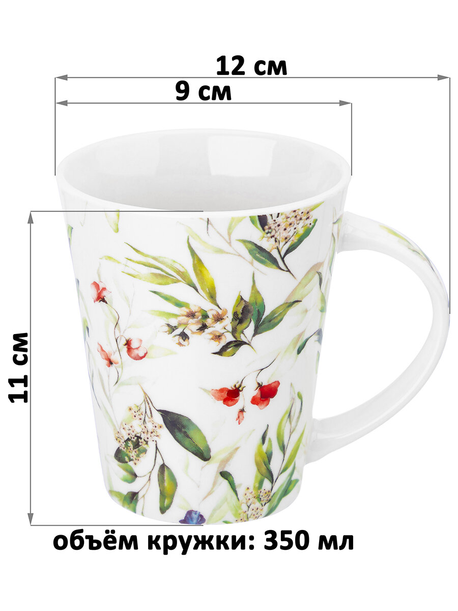 Кружка / чашка для кофе, чая 2 шт 350 мл 12х9х11 см Elan Gallery Зеленые веточки, набор