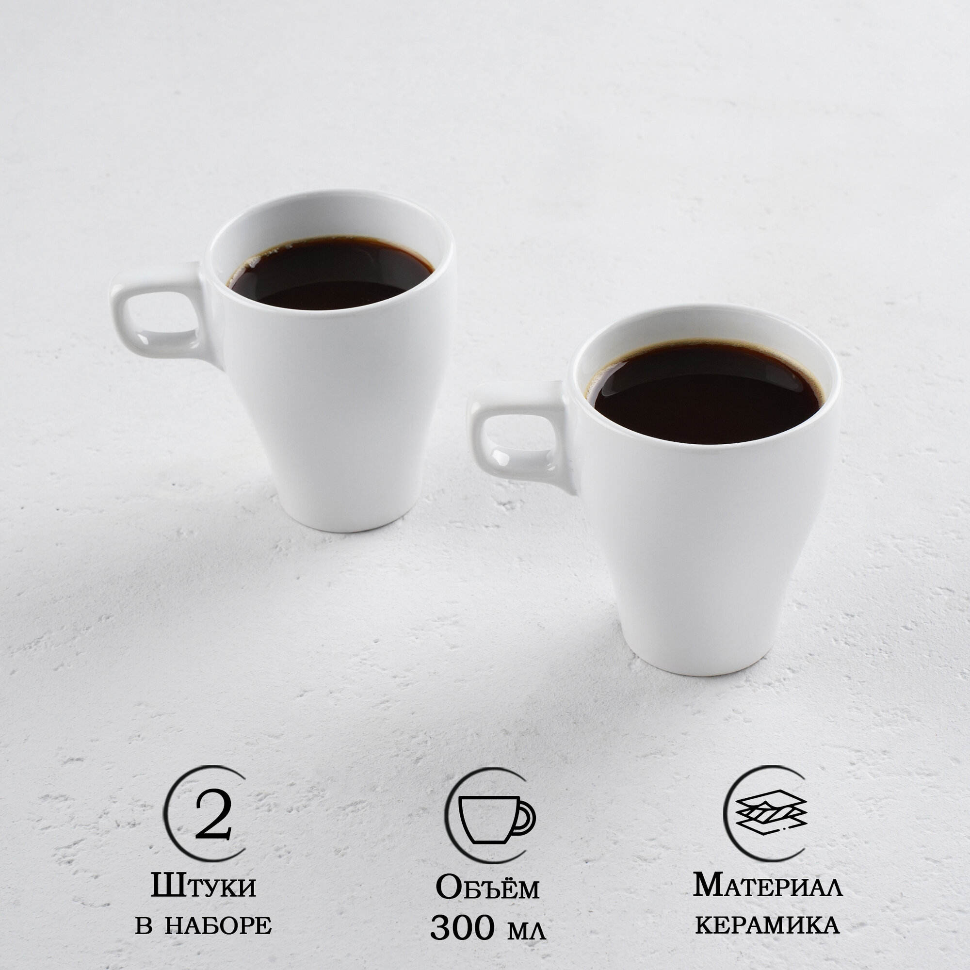 Купить Кружки для чая и кофе керамические Доляна Coffee break, 300мл, набор на 2 персоны, цвет белый
