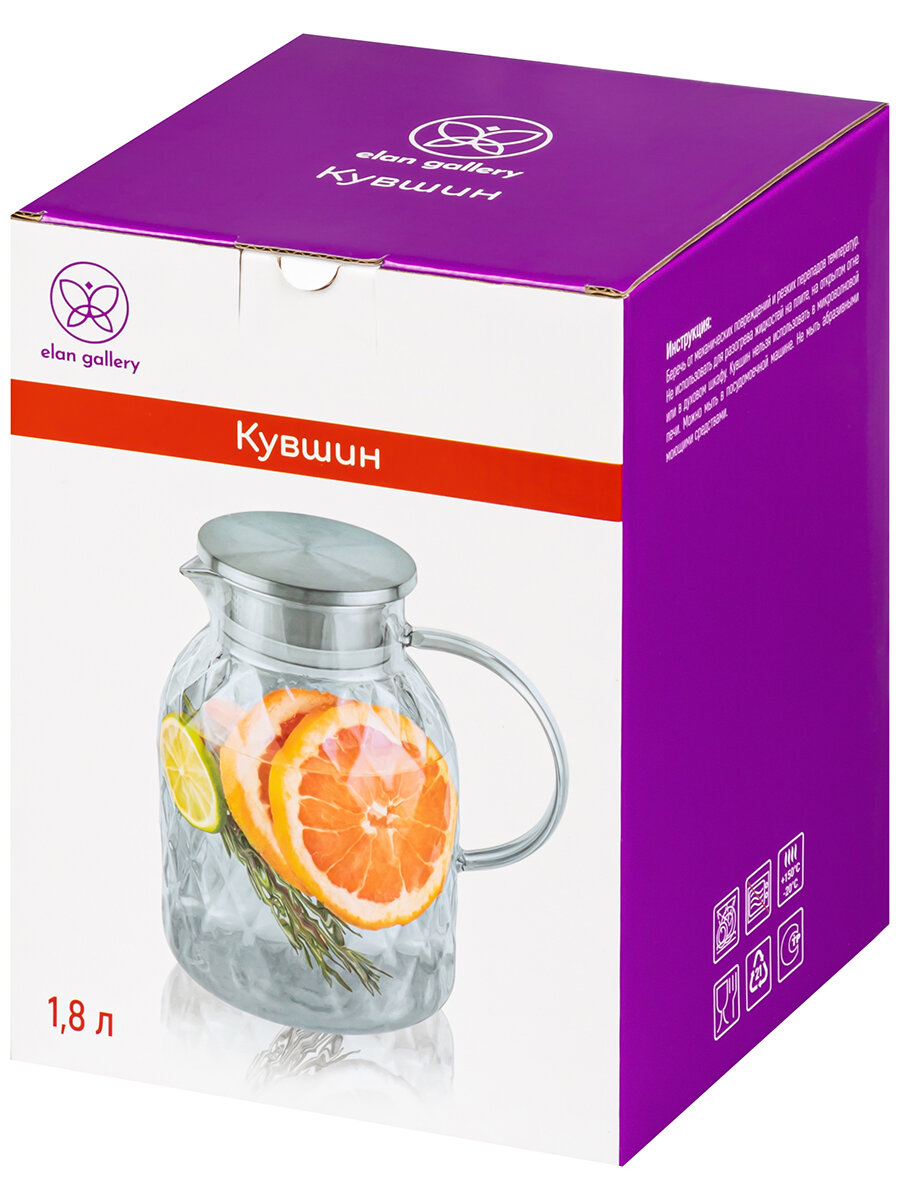 Купить Кувшин, графин 1,8 л 18х13х19,5 см Elan Gallery Crystal glass с металлической крышкой с силиконовым уплотнителем