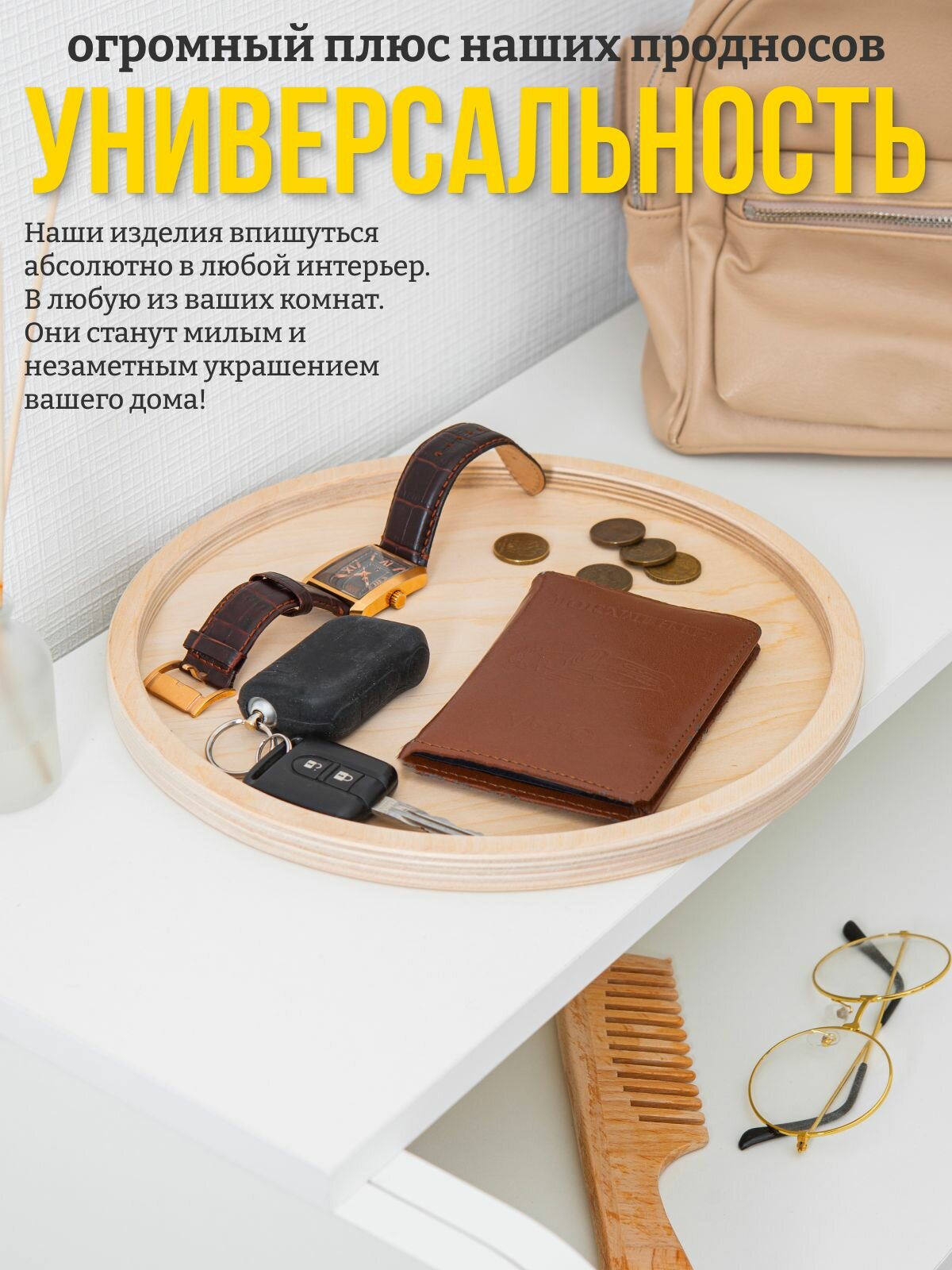 Набор два круглых подноса из дерева 25 и 27.5 см для декора и дома интересное: