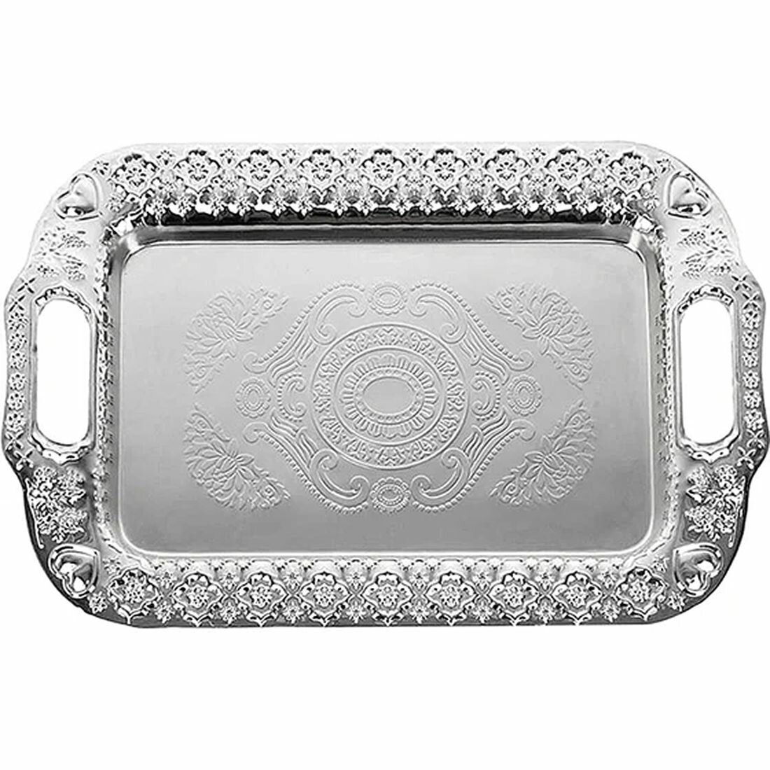 Купить Поднос сервировочный (серебро) 34x22,5x3см (металл с гальваническим покрытием)