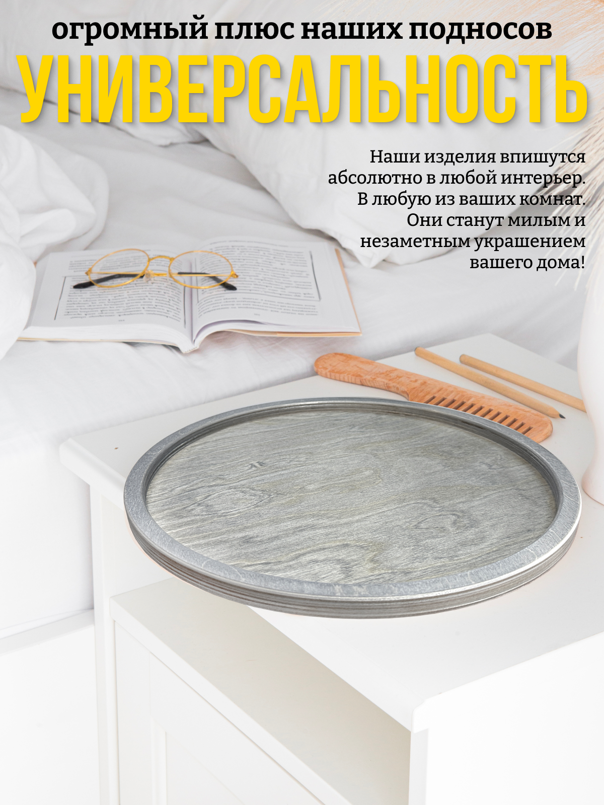 | Дополнительная информация | посуда из дерева;поднос деревянный;круглый поднос;милый поднос;поднос для декора;поднос для фото;поднос для кафе;подставка для специй;красивый подносик;поднос в прихожую;поднос в гостинную;поднос в ванну;подносы разной формы;из дерева;поднос для души |