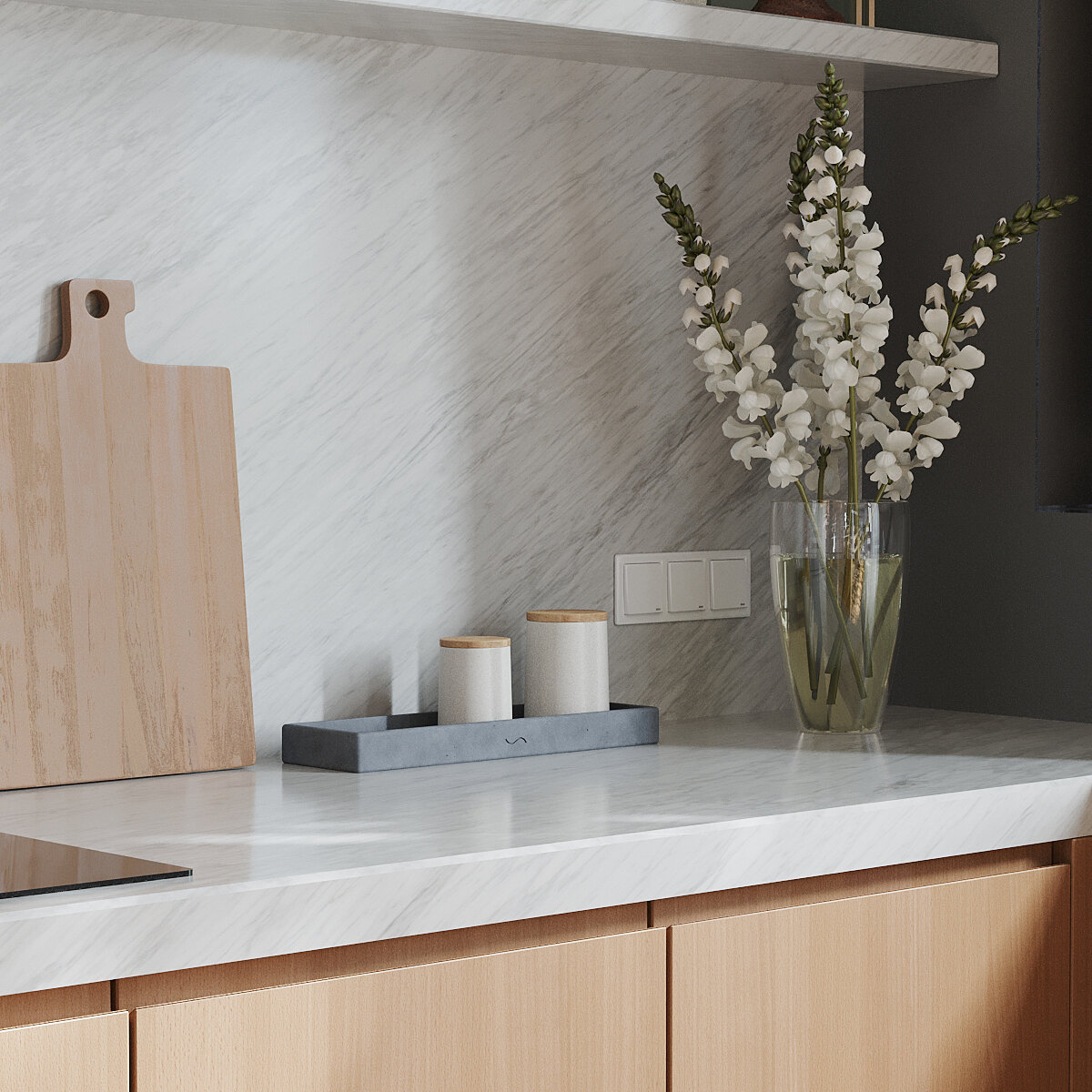 Поднос кухонный Emily L 21x21 см, декоративная подставка, бетон, белый матовый