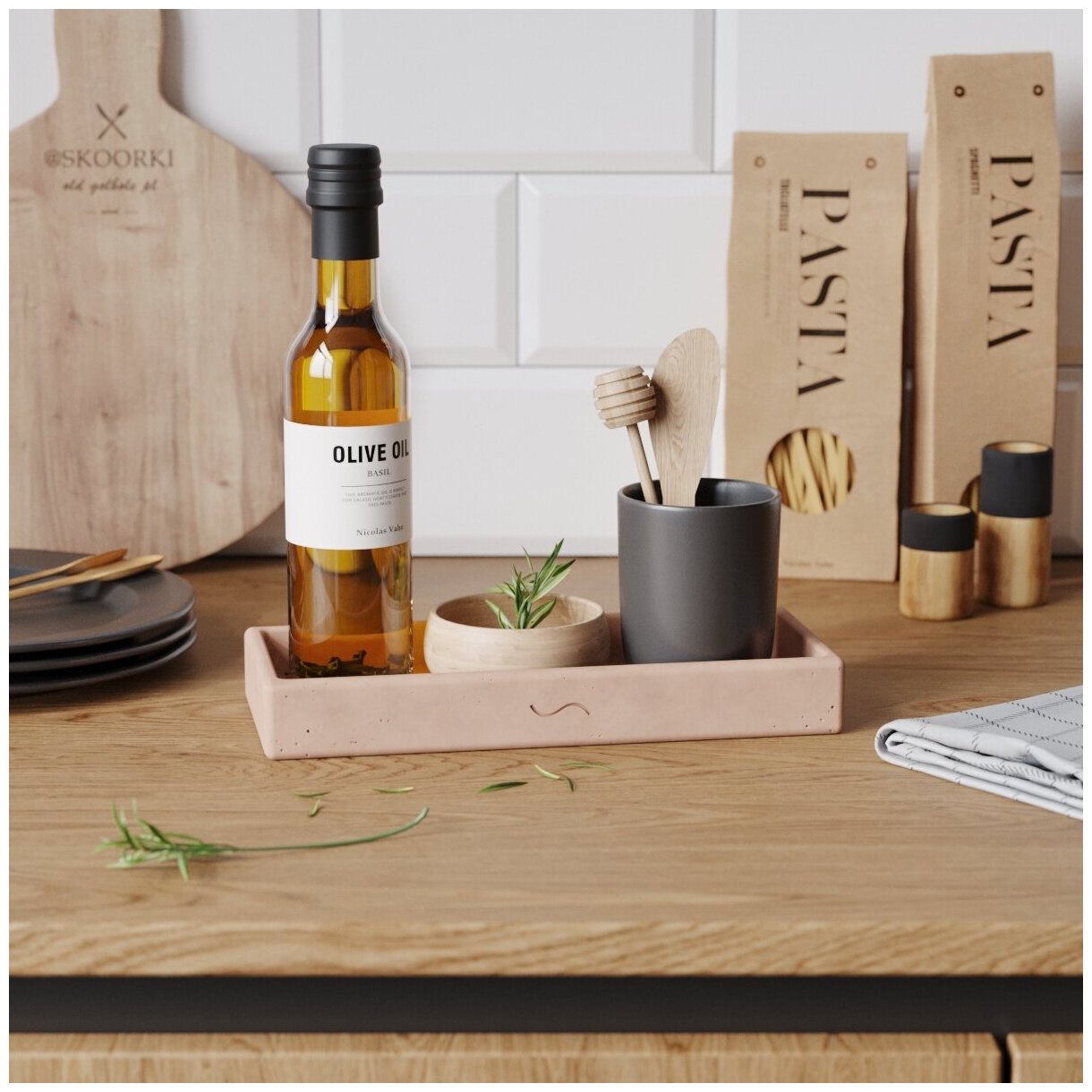 СохранитьПоднос кухонный Emily S 23x10 см, декоративная подставка, бетон, розовый матовый интересное: