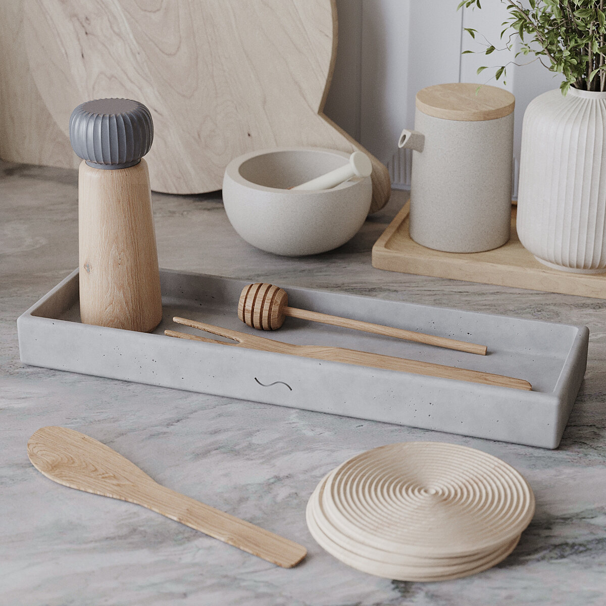 Поднос кухонный Emily L 21x21 см, декоративная подставка, бетон, серый матовый