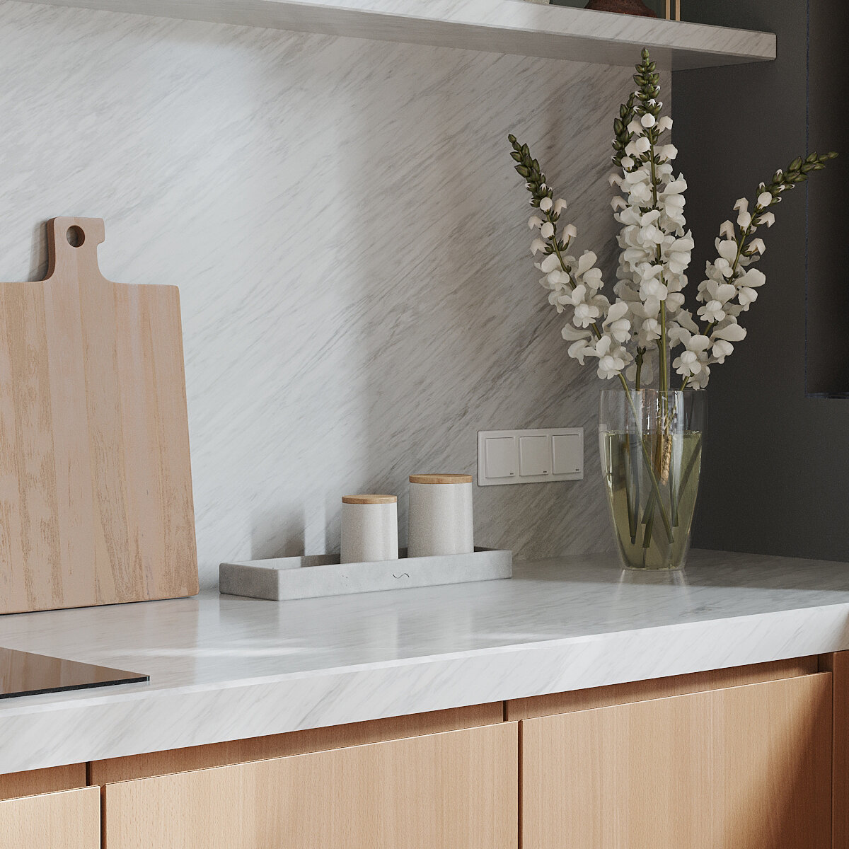 Поднос кухонный Emily L 21x21 см, декоративная подставка, бетон, белый матовый