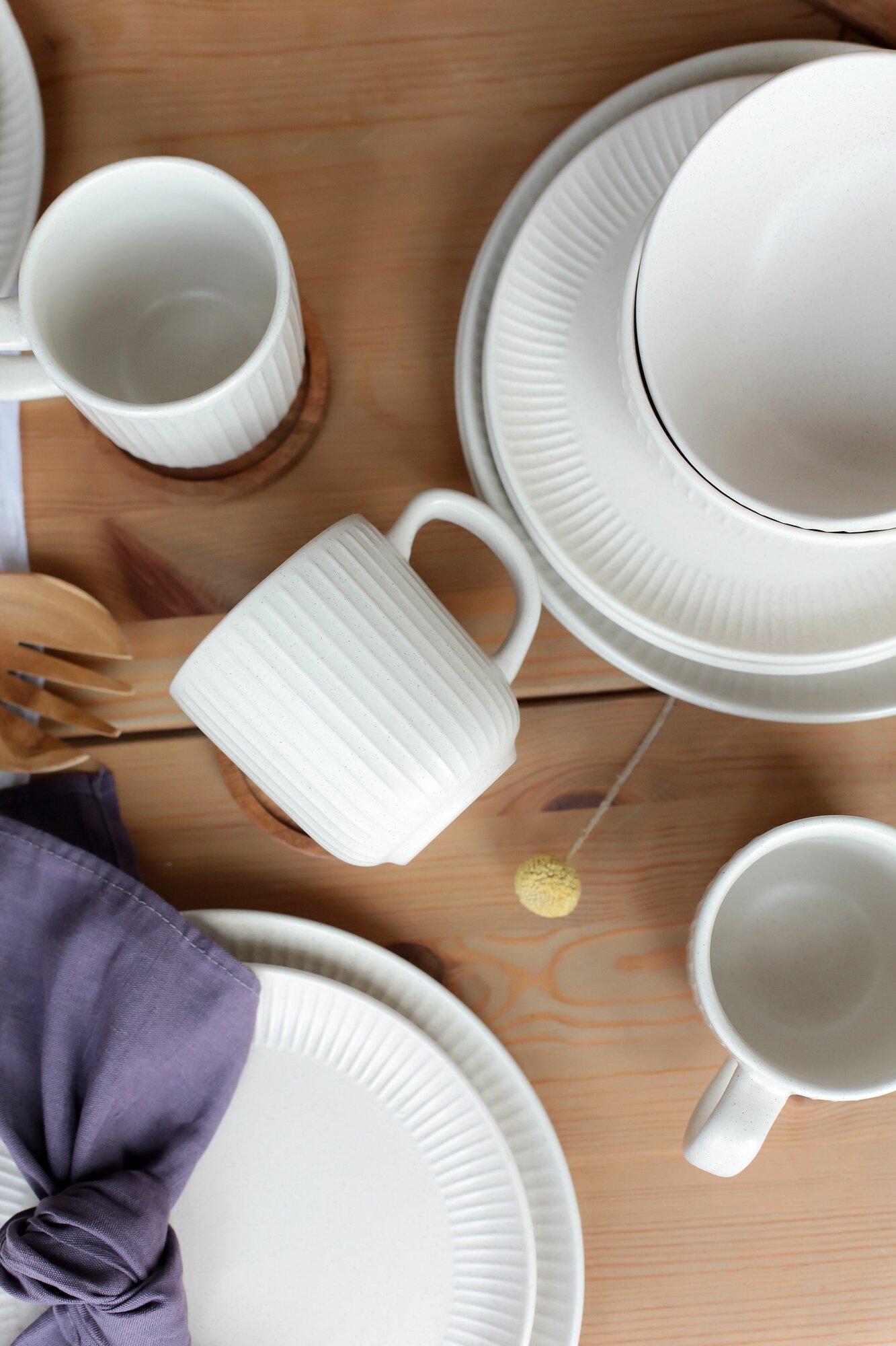 СохранитьНабор посуды столовой на 4 персоны 16 предметов "Costa milk" керамика. Столовый сервиз обеденный c кружками и салатниками интересное: