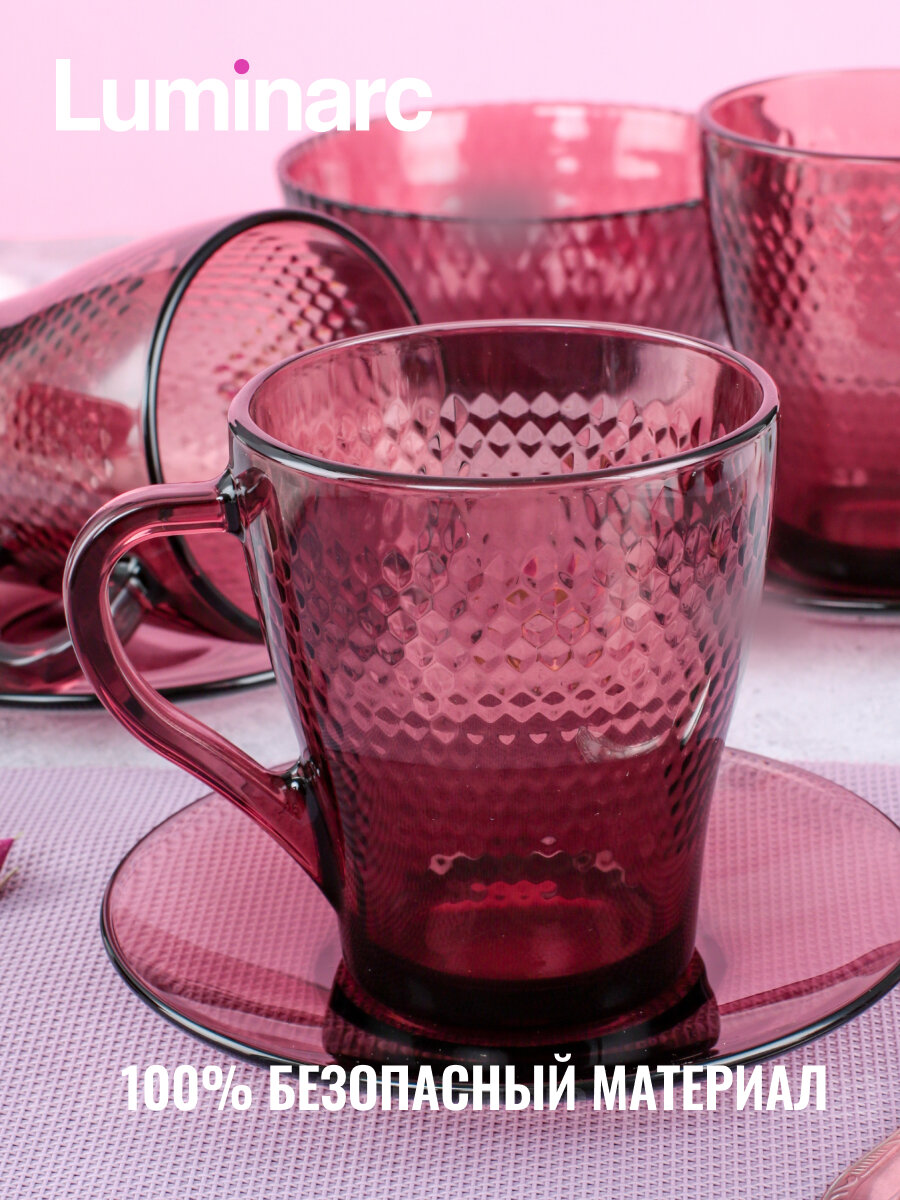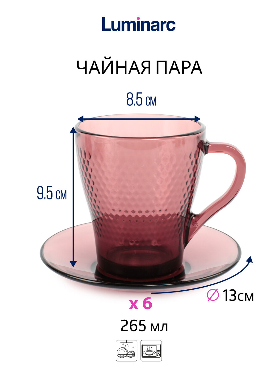 Luminarc Чайный стеклянный набор Luminarc «Идиллия», 12 предметов: кружка 265 мл, 6 шт, блюдце d=13 см, 6 шт, цвет лилак