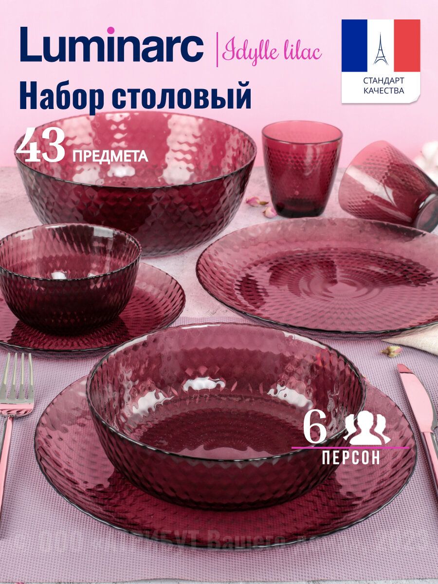 Купить Столовый сервиз Luminarc «Идиллия», 43 предмета, стекло, лилак