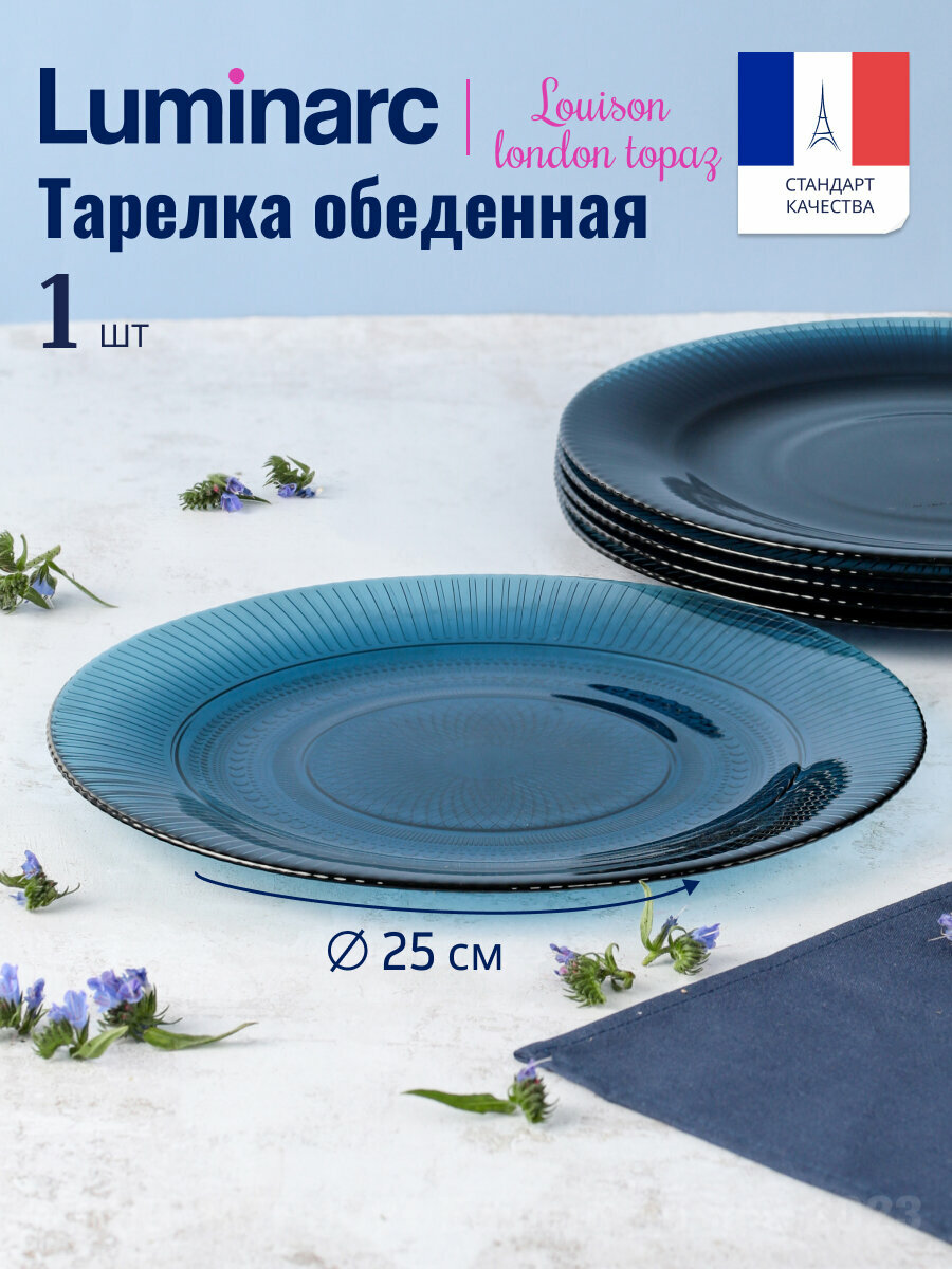 Тарелка обеденная "Луиз Лондон" Luminarc, d=25 см (топаз), стекло, цвет синий интересное: