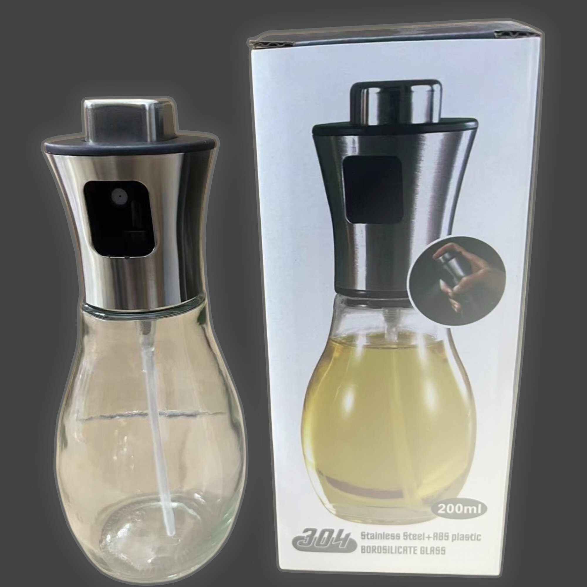 Купить Распылитель для масла и уксуса, 200мл, серебристый, с дозатором, из стекла и пластика