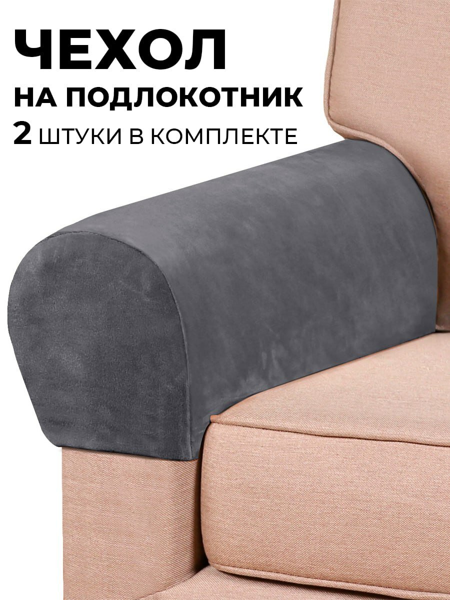Чехол на подлокотники, искусственный бархат-стрейч, цвет серый интересное: