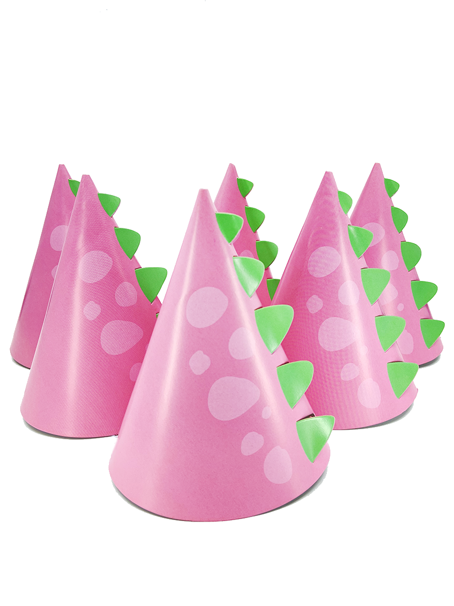 Колпаки Riota "Милые динозаврики", для гостей, 6 штук, розовые, бумага интересное: