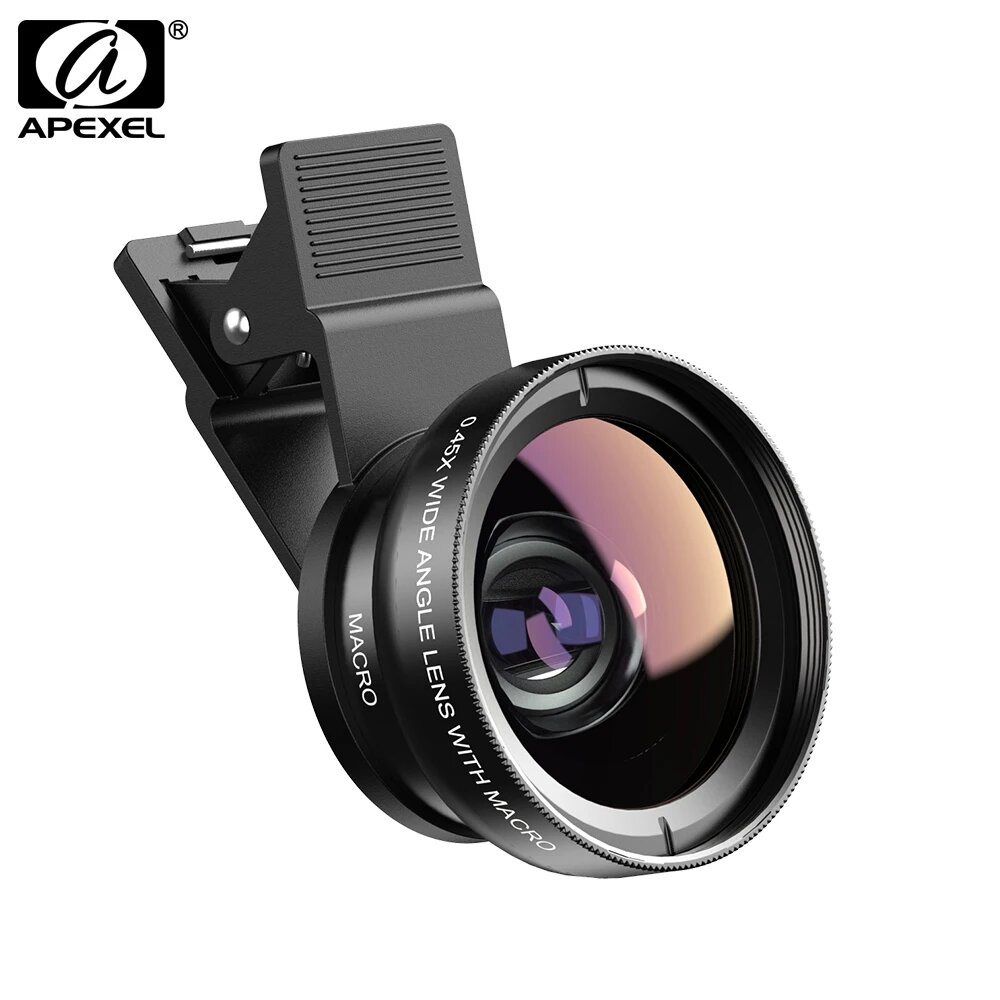 Объектив APEXEL 2 в 1, широкоугольный 0,45X + макрообъектив 12,5X, профессиональный HD-объектив для камеры телефона iPhone 8 7 6S Plus Xiaomi Samsung LG, BLACK интересное: