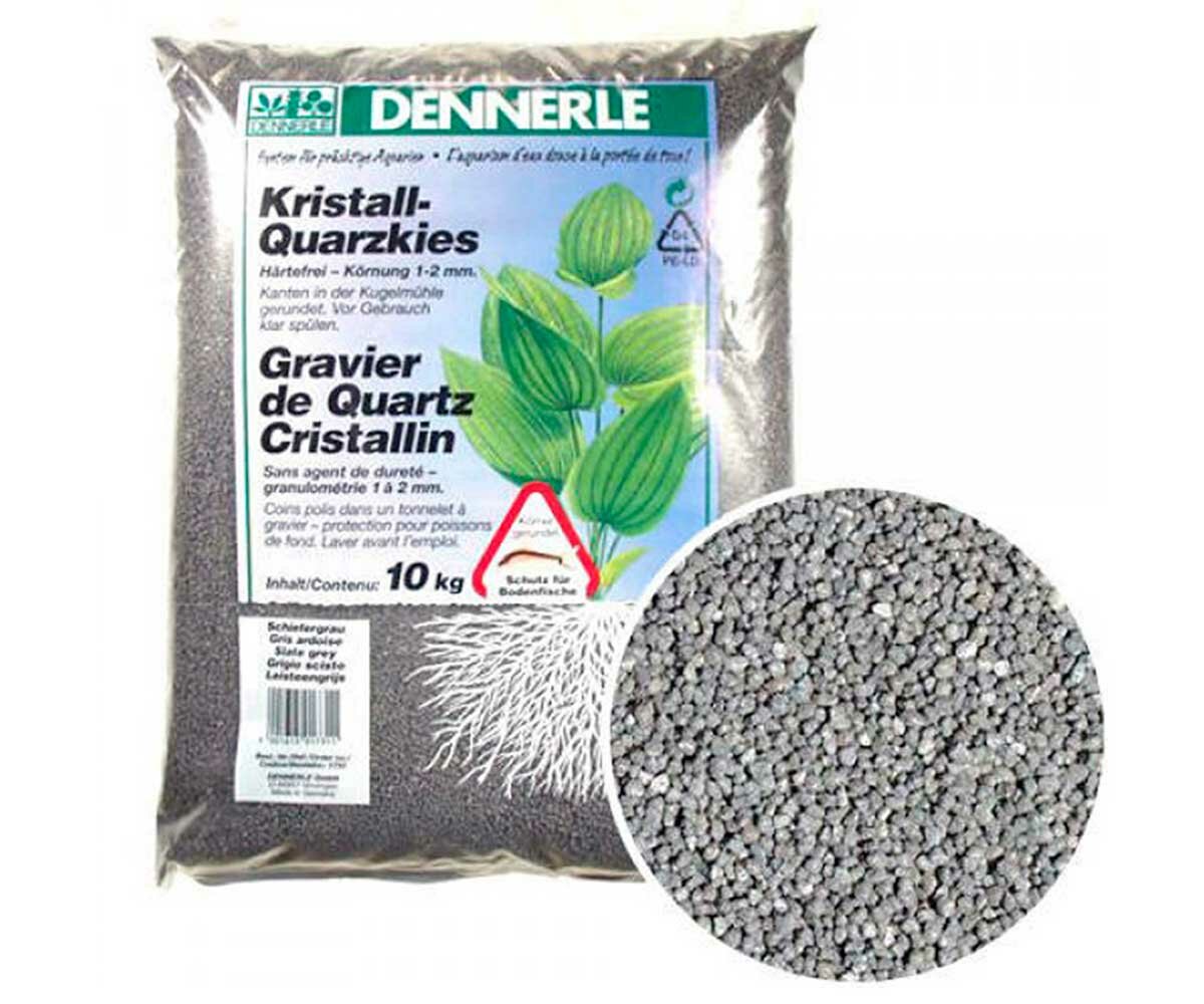 Грунт Dennerle Kristall-Quarz, гравий фракции 1-2 мм, цвет сланцево-серый, 10 кг.