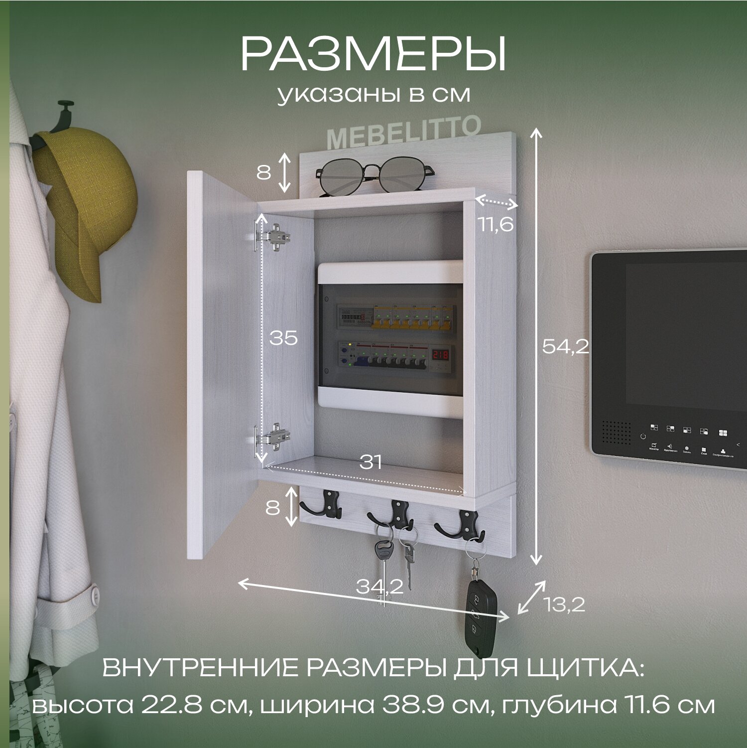 Ключница "Осло" настенная в прихожую деревянная на щиток Дуб крафт белый