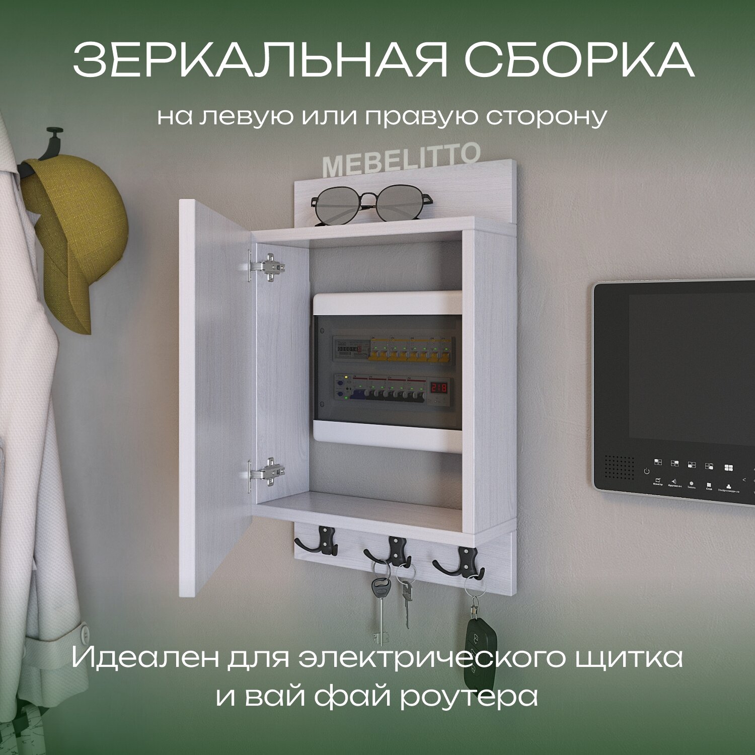 Ключница "Осло" настенная в прихожую деревянная на щиток белая