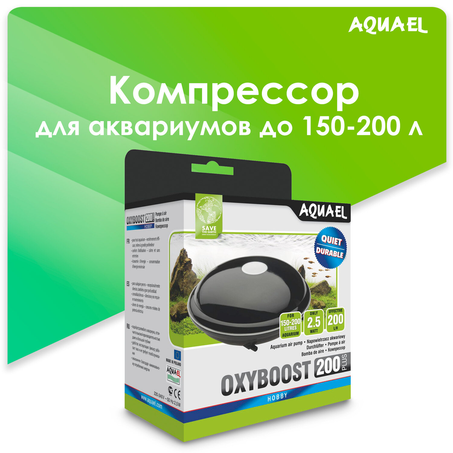Компрессор Aquael OXYBOOST 200 plus /для аквариумов 150-200 л/