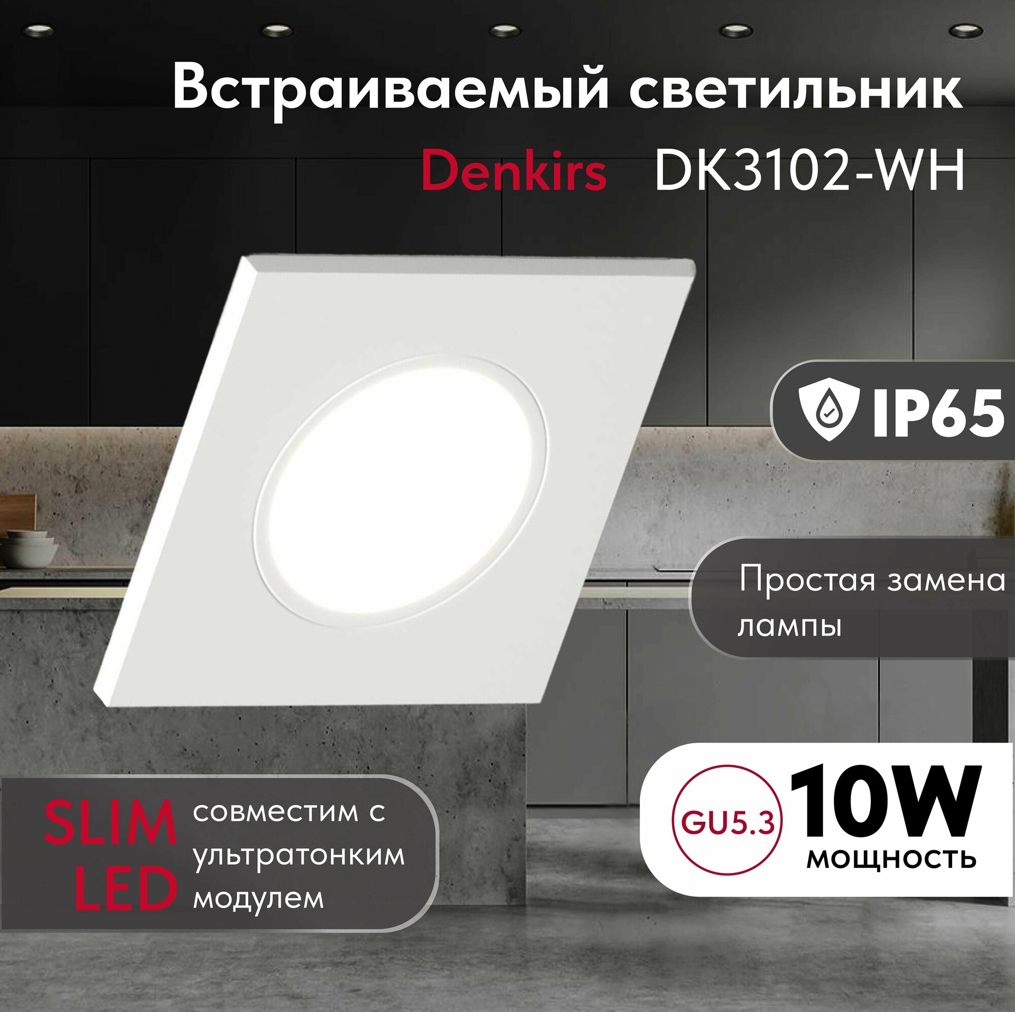 Купить Светильник потолочный встраиваемый, влагозащищённый DENKIRS DK3102-WH, IP 65, квадратный, белый GU5,3, пластик