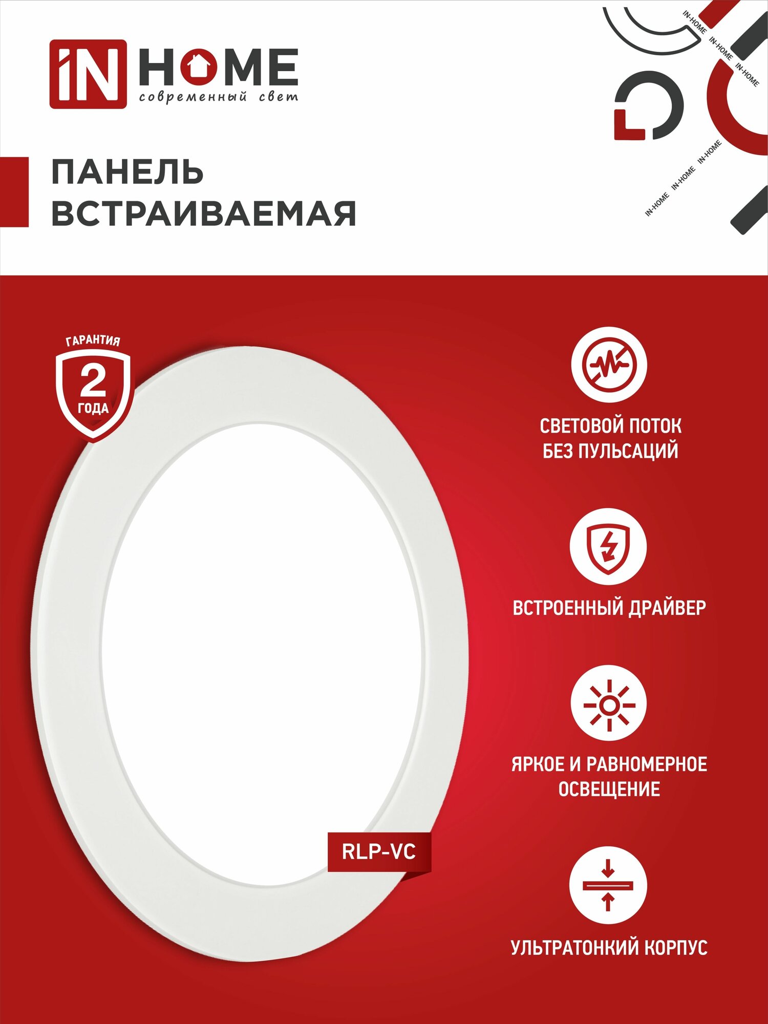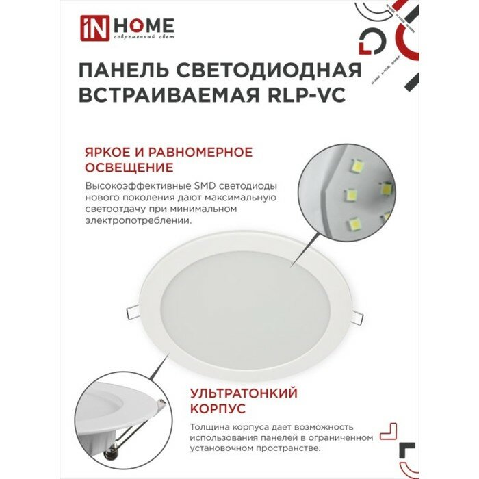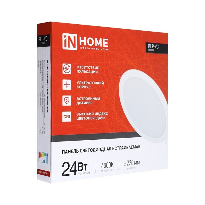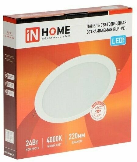 Светильник IN HOME RLP-VC 24Вт, 4000К, 1920Лм, LED, 24 Вт, 4000, нейтральный белый, цвет арматуры: белый, цвет плафона: белый 4690612034973