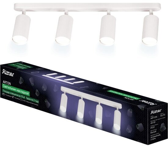 Купить Накладной светильник Ritter , Arton, поворотный, цилиндр, 500x55x160мм, 4хGU10, алюминий, белый, 59991 3,
