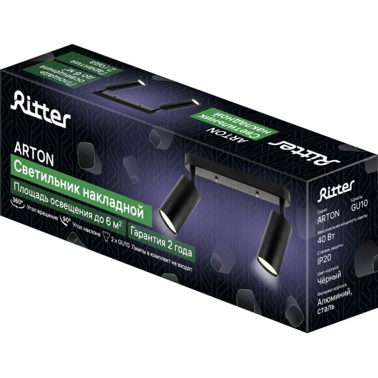 Купить Накладной светильник Ritter , Arton, поворотный, цилиндр, 260x55x160мм, 2хGU10, алюминий, черный, 59934 0,