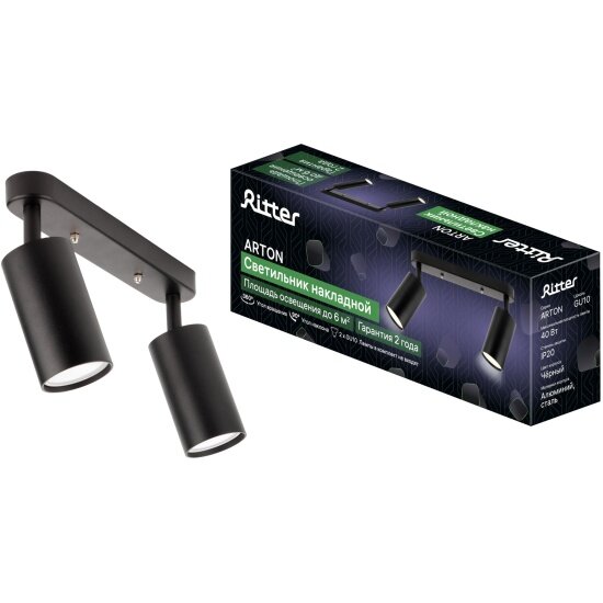 Спот поворотный точечный накладной Ritter Arton 59934 0 2хGU10 цвет черный