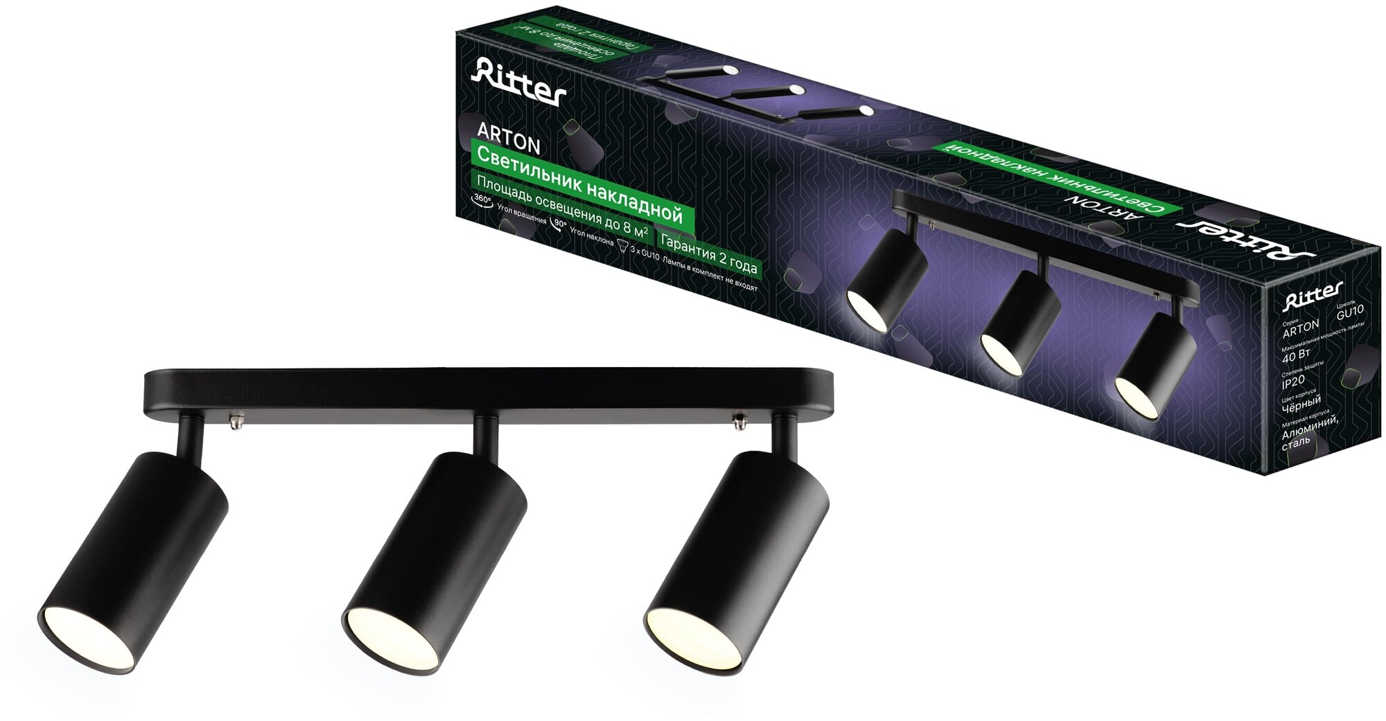 Купить Накладной светильник Ritter , Arton, поворотный, цилиндр, 350x55x160мм, 3хGU10, алюминий, черный, 59935 7,