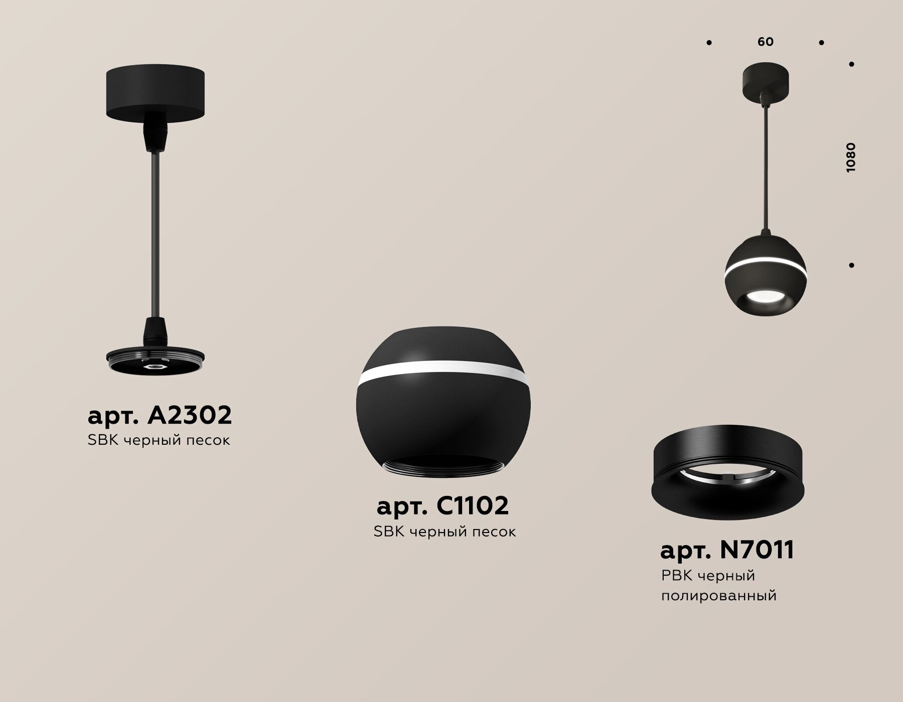 Комплект подвесного светильника Ambrella Light Traditional XP1122015 SWH/PBK/SBK белый песок/черный полированный/черный песок MR16 GU5.3