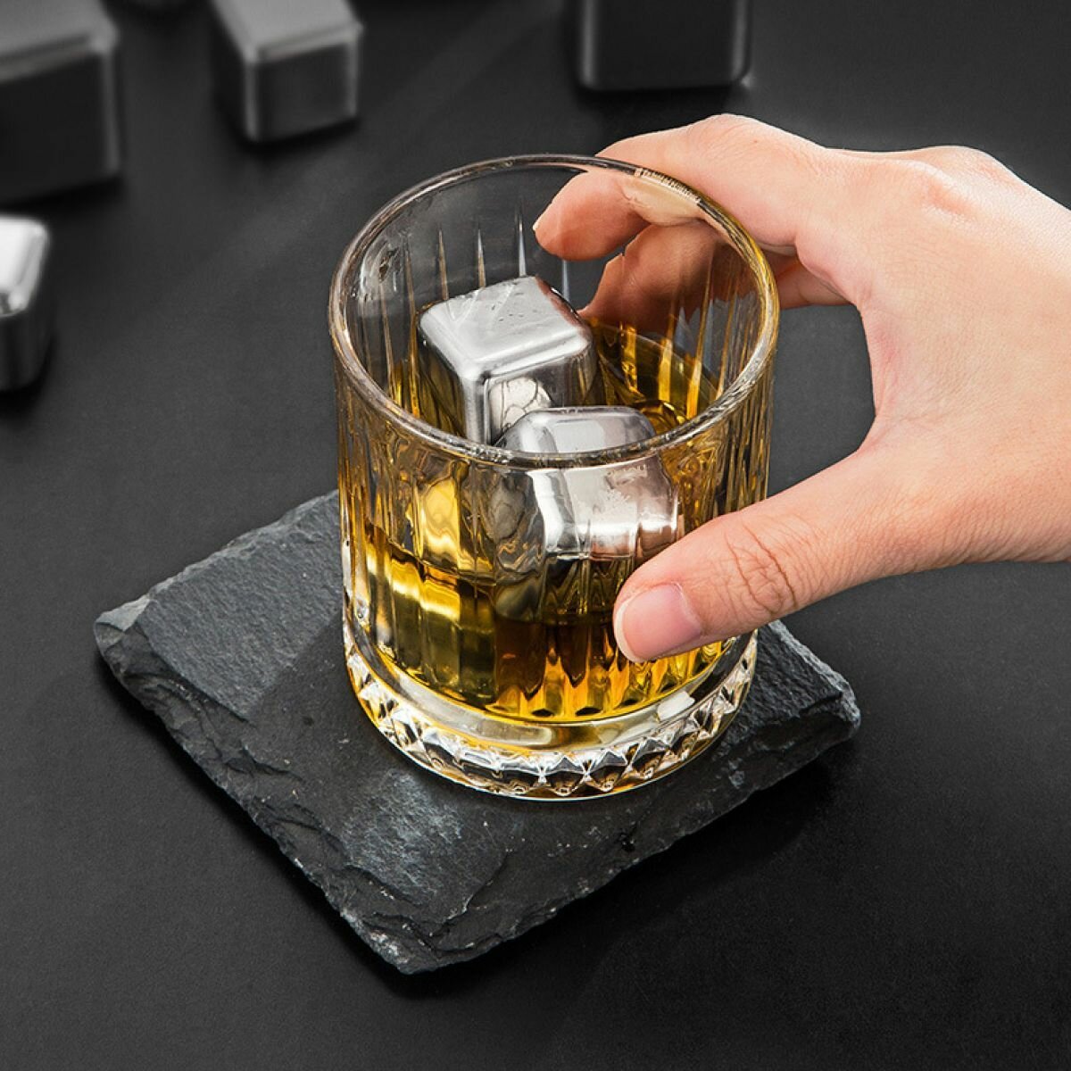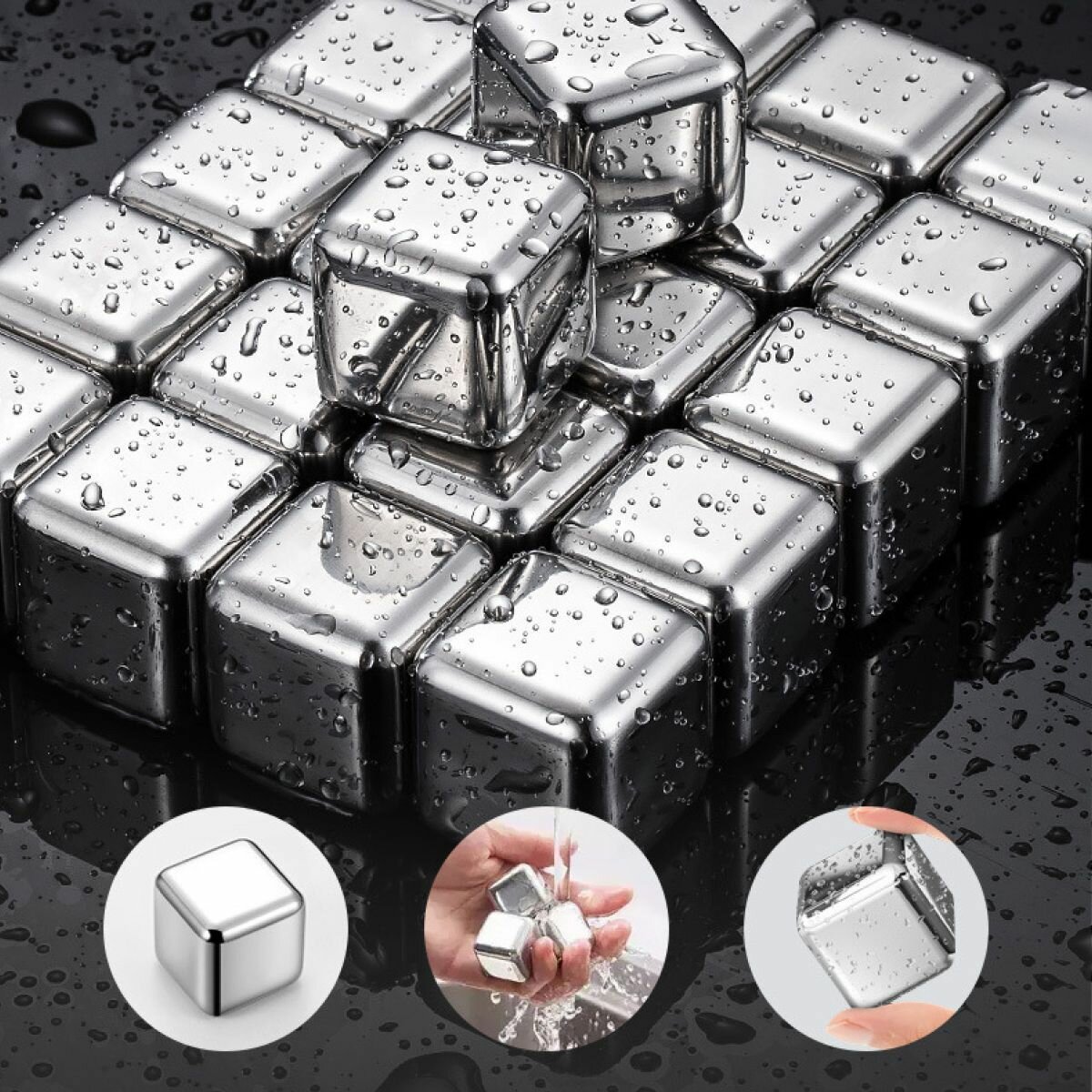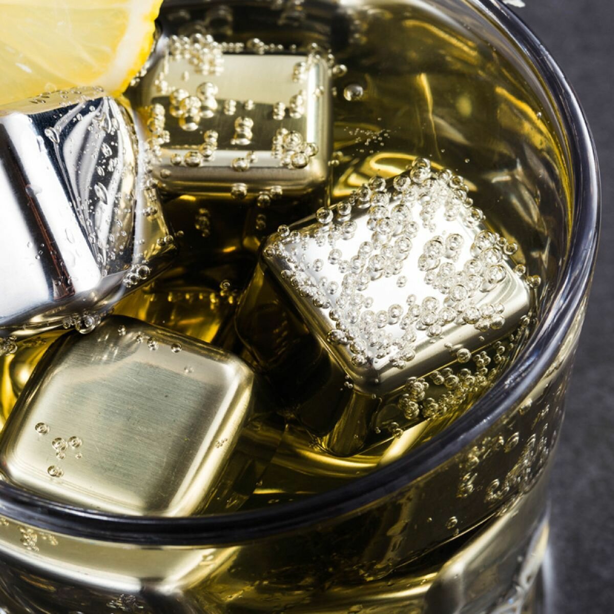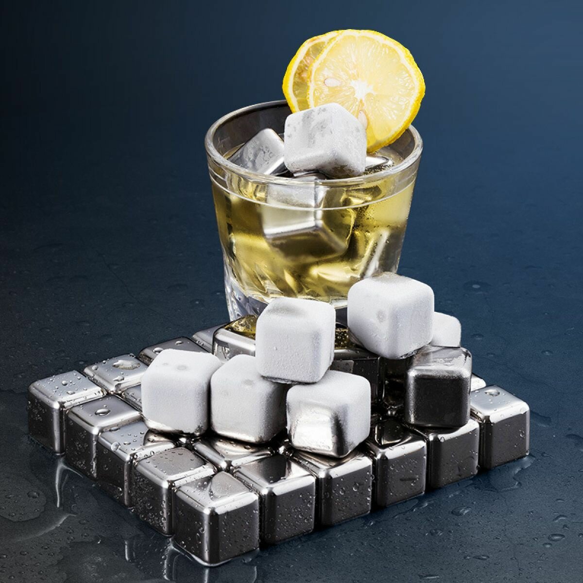 Многоразовые металлические кубики с щипцами и кейсом для охлаждения напитков 6 шт.